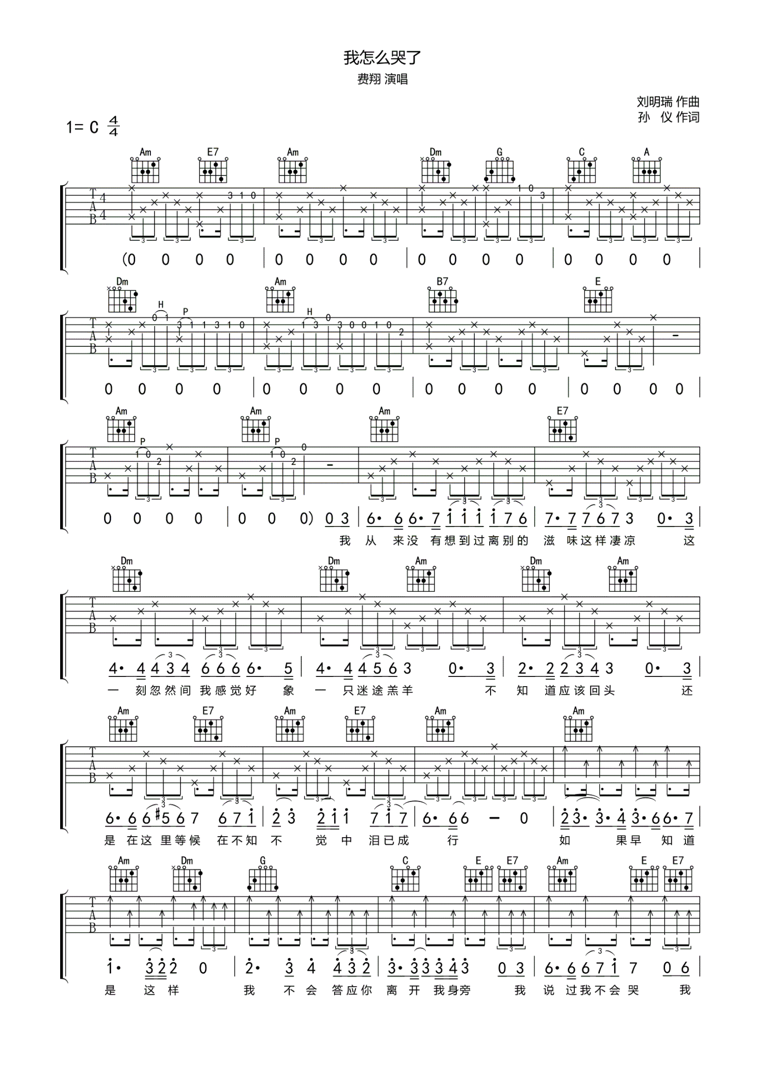 • 我怎么哭了吉他谱 - 费翔 - C调吉他弹唱谱第1张