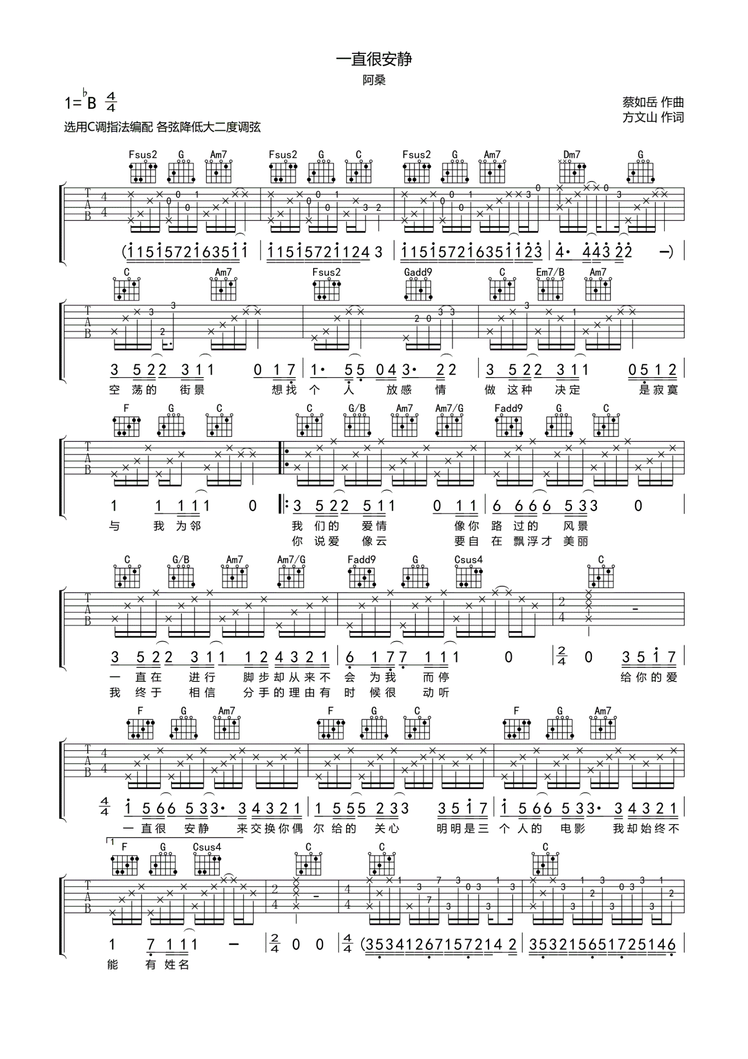 曲谱介绍: 阿桑《一直很安静》吉他谱_C调吉他弹唱谱