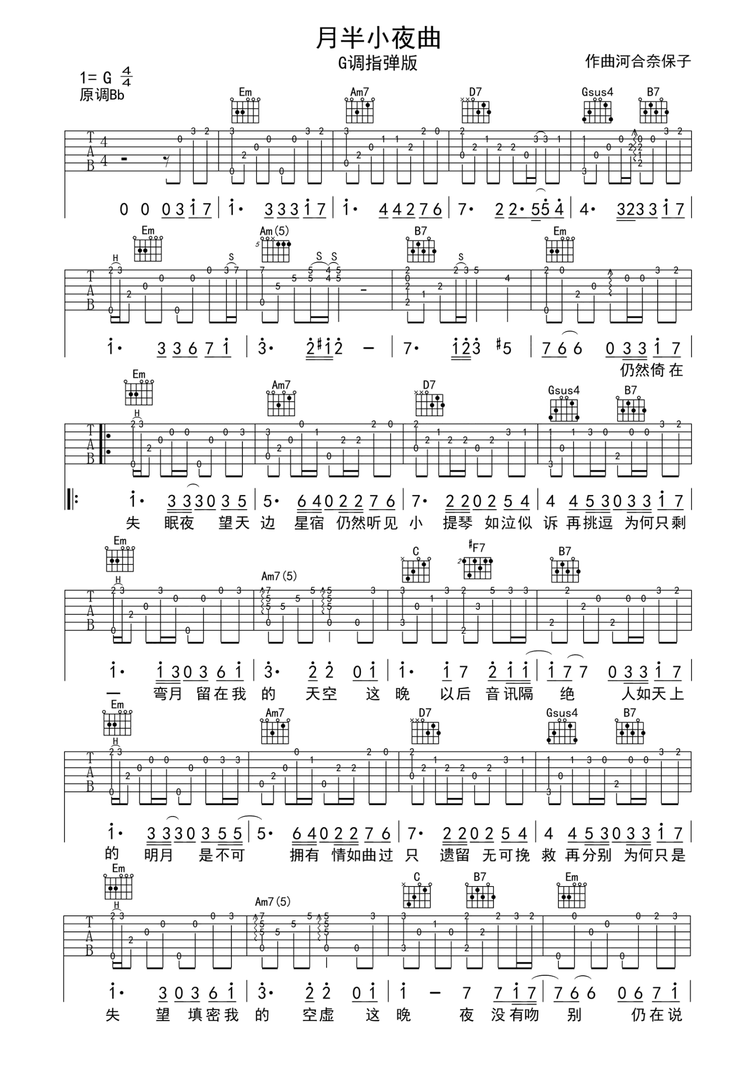 当前位置:琴谱网>吉他独奏>月半小夜曲