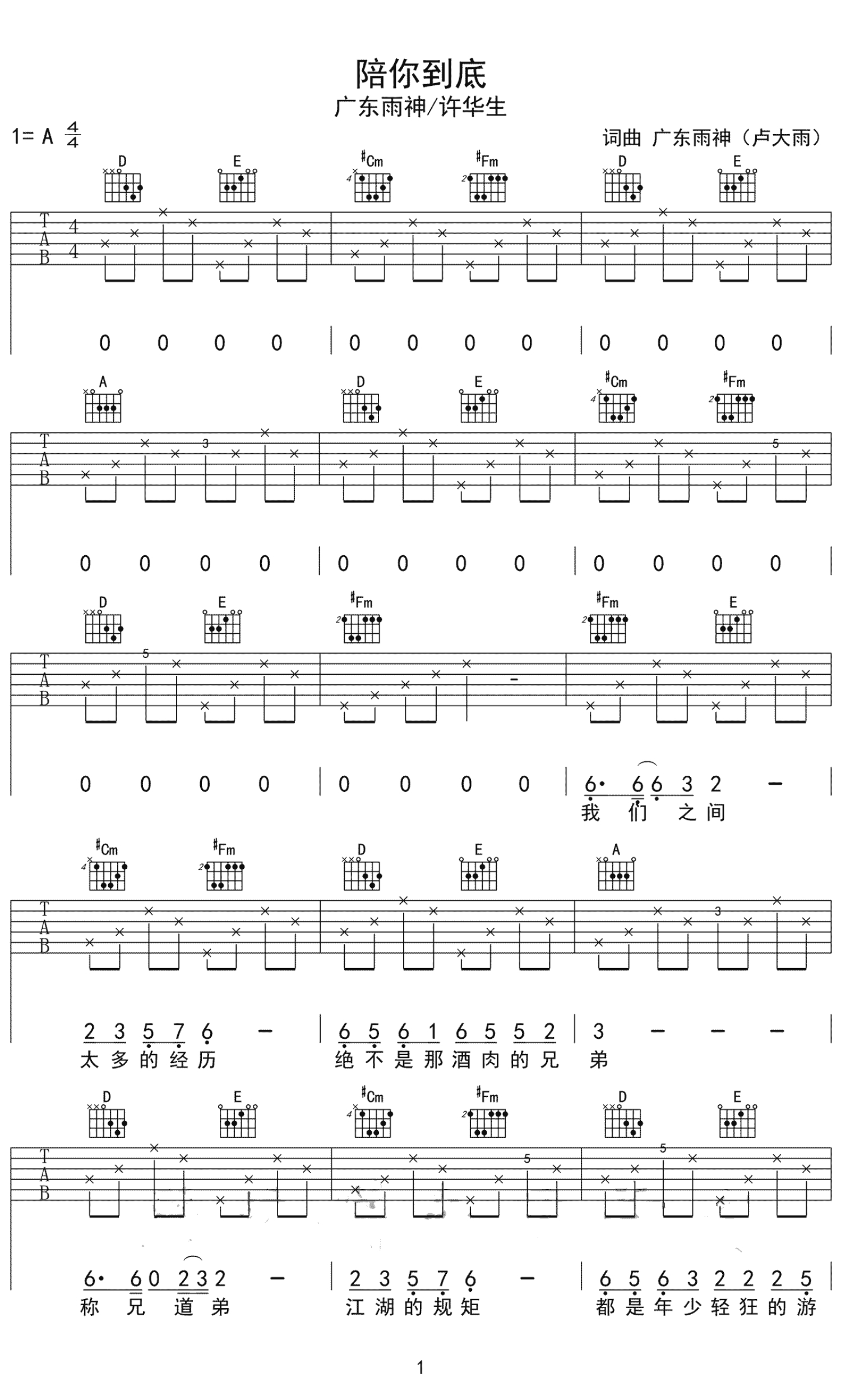 陪你到底吉他谱 - 许华升/广东雨神 - A调吉他弹唱谱