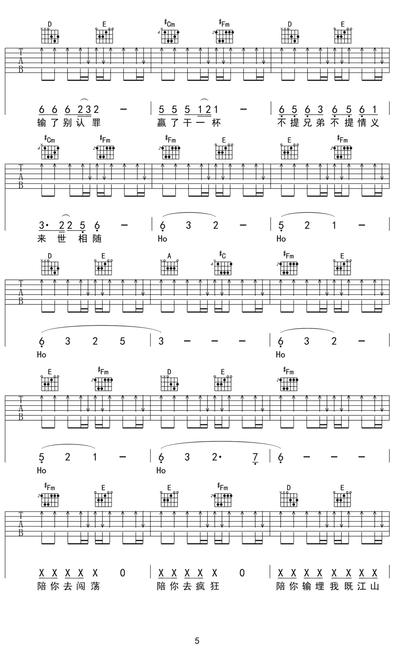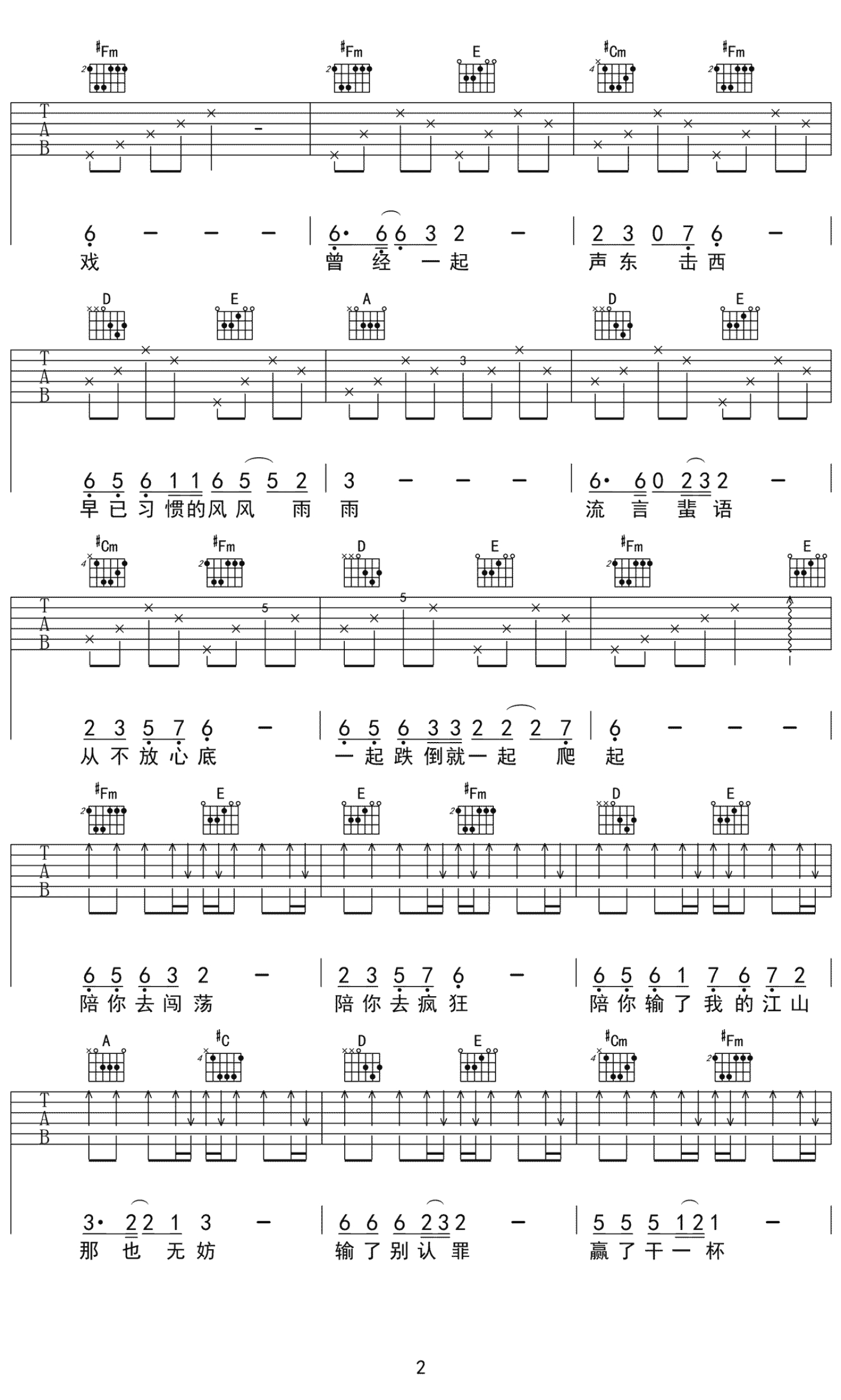 曲谱介绍: 陪你到底吉他谱,A调和弦指法编配。陪你到底吉他弹唱谱,兄弟们总是经历太多的事情,一句话也说不清楚,有时我们都叹息它,从小时候一起玩耍,到长大一起创业奋斗,一起进步,一起前进。我们一起跌倒,一起站起来,一起冲,一起疯狂。这是纯洁而真诚的兄弟情谊。没有这些规章制度,笑或哭没什么大不了的。在兄弟面前,承诺是一辈子,我们一起走,没有什么可害怕的。兄弟,我会陪你走到生命的尽头!