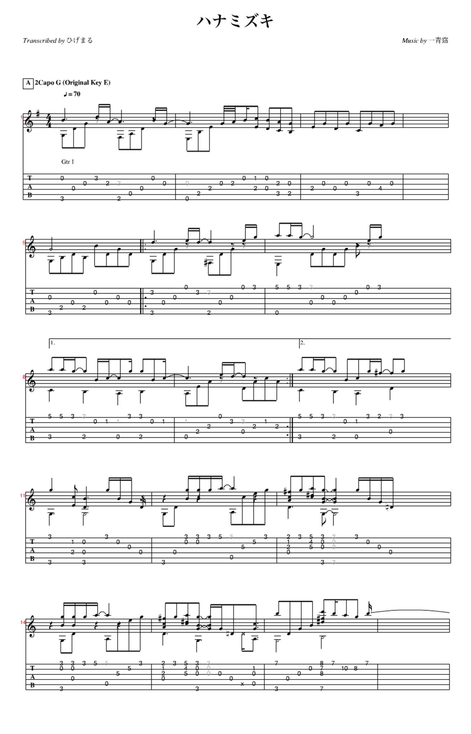 花水木吉他谱 - 松井祐貴 - 吉他独奏谱