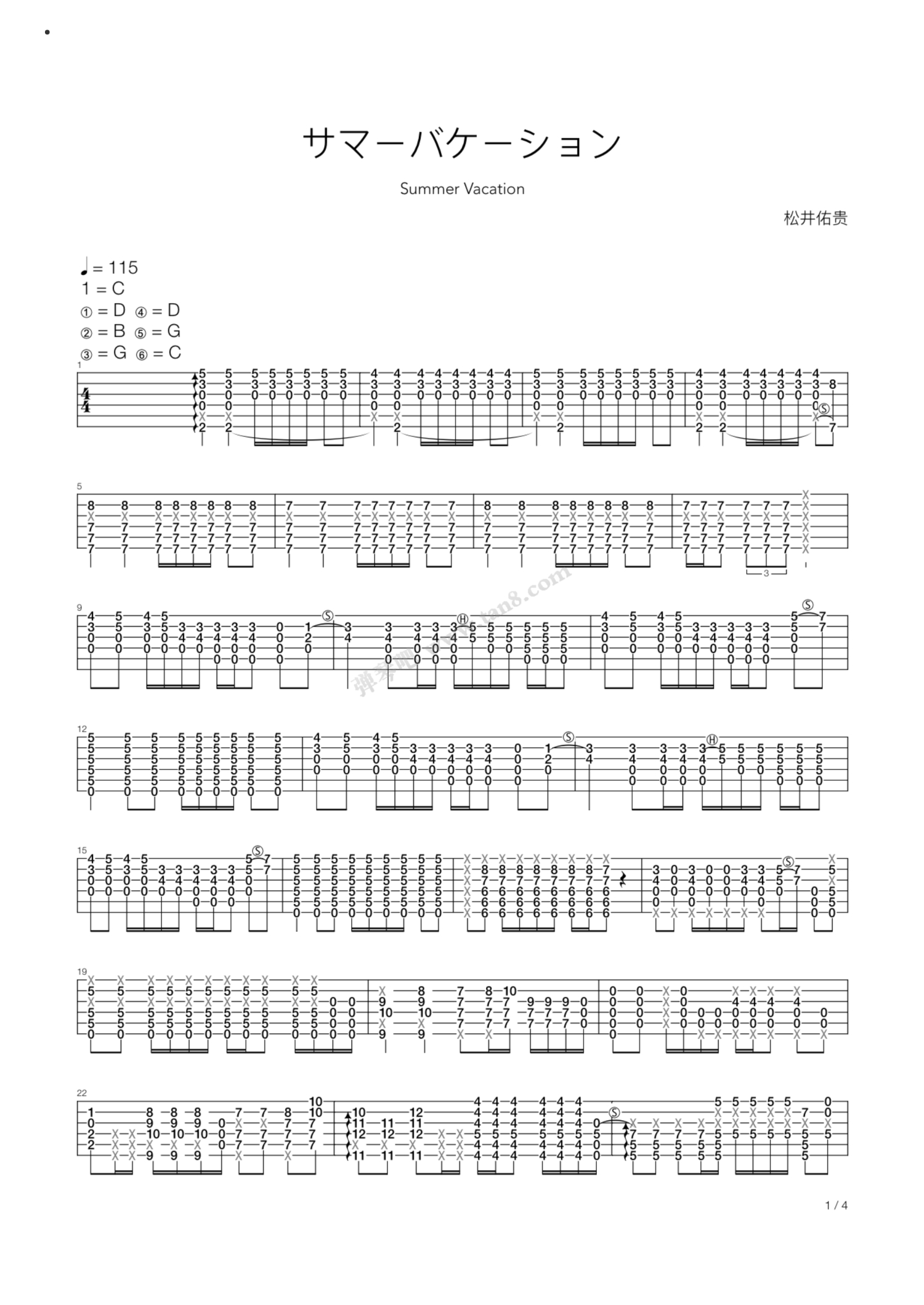 曲谱介绍: 松井佑贵《Summervacation》原版指弹吉他六线谱