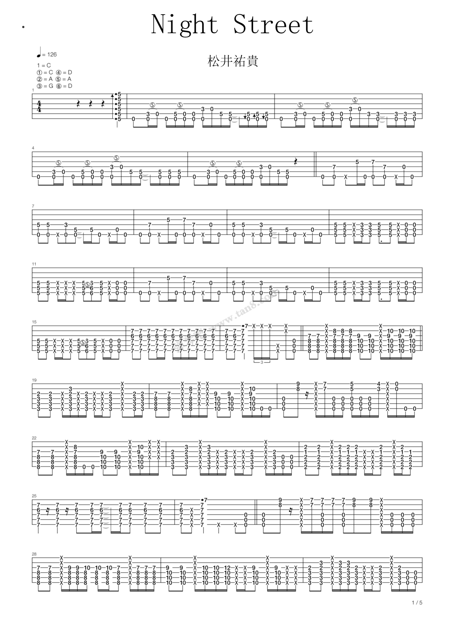 Night Street吉他谱 - 松井祐貴 - 吉他独奏谱