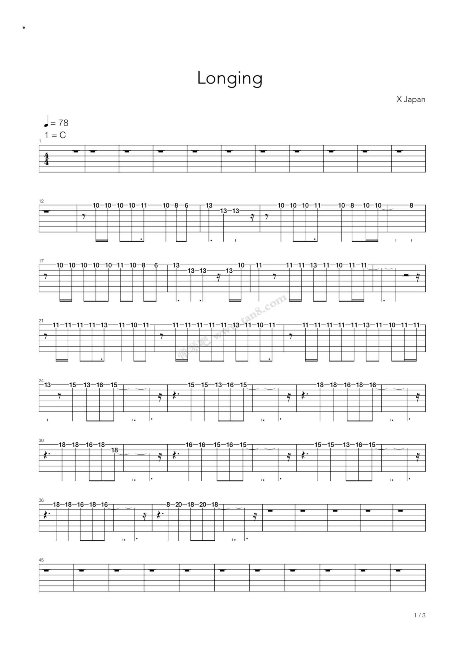 曲谱介绍: 《Longing》,X-Japan(六线谱吉他谱)