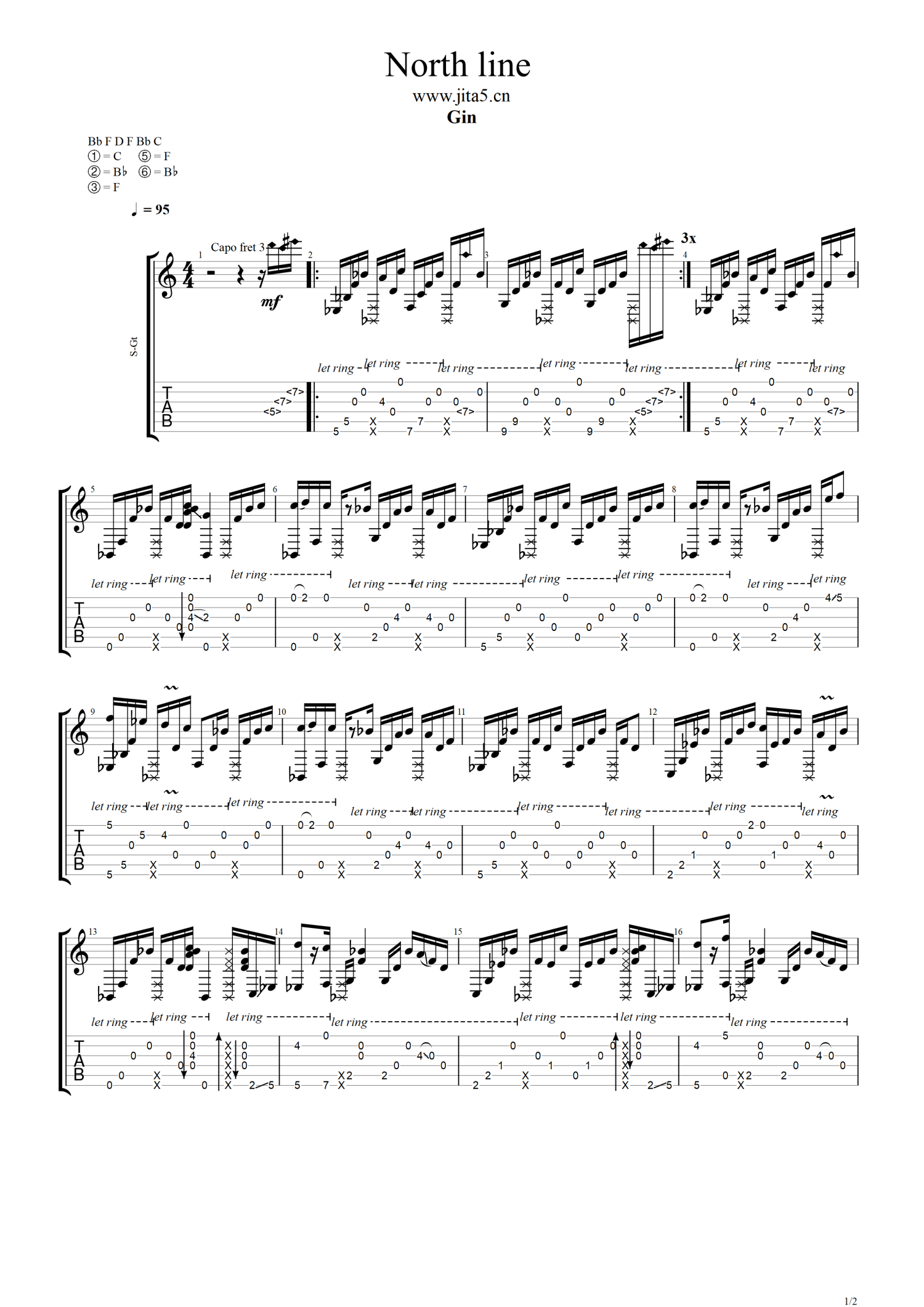 曲谱介绍: NorthLine-GIN指弹吉他谱