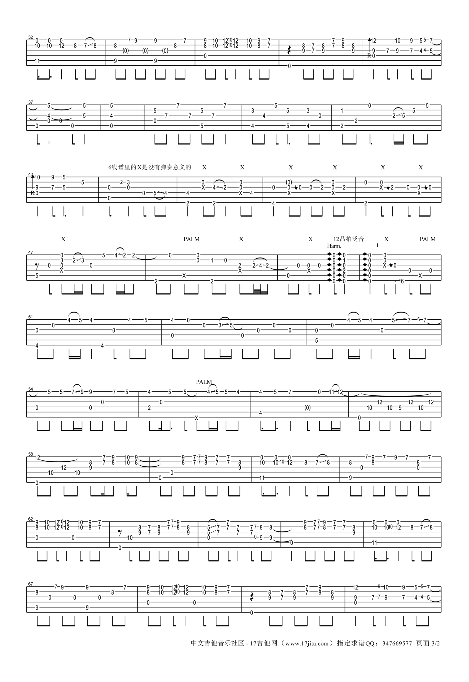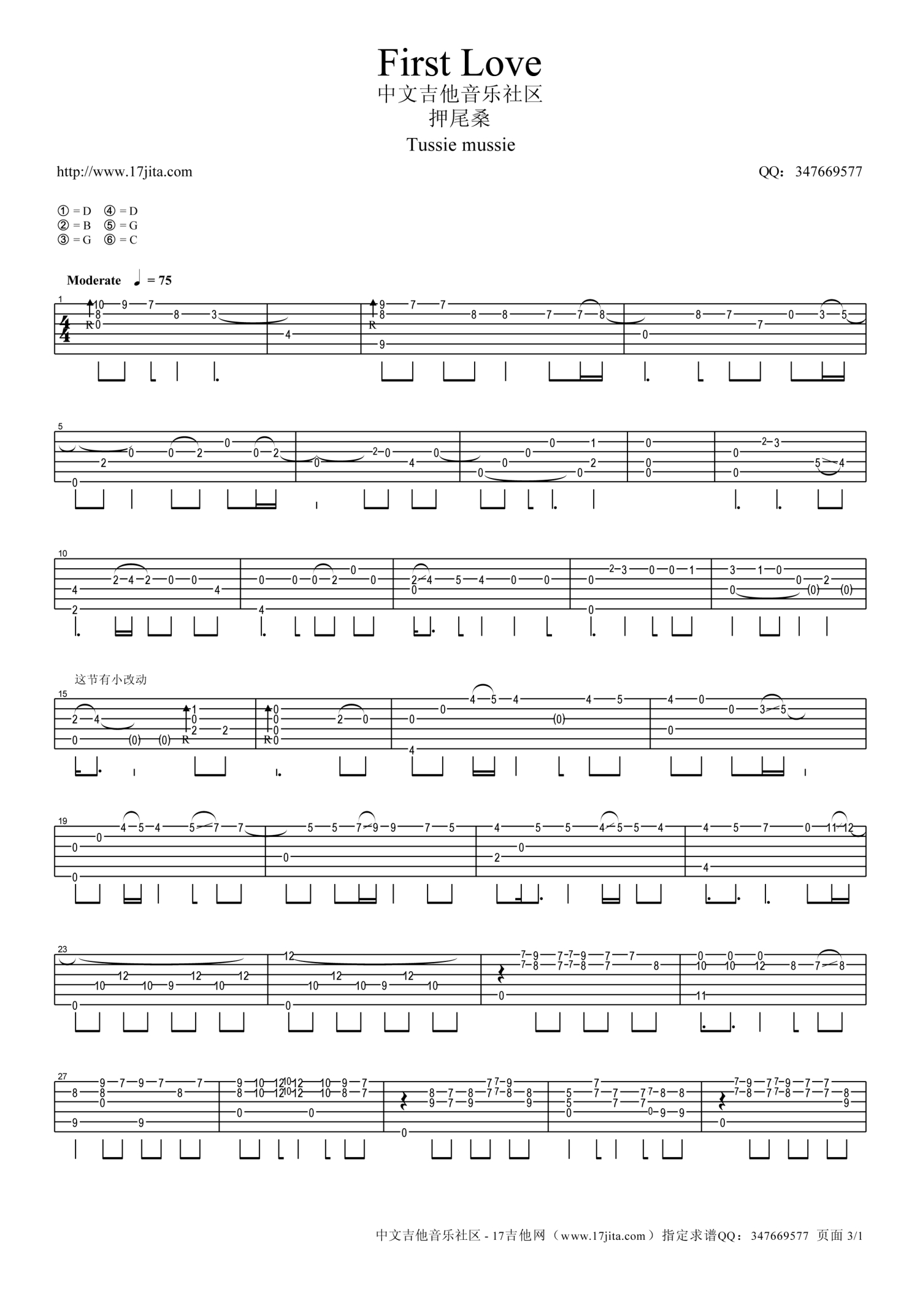 曲谱介绍: 押尾桑FirstLove吉他谱六线谱【高清版】