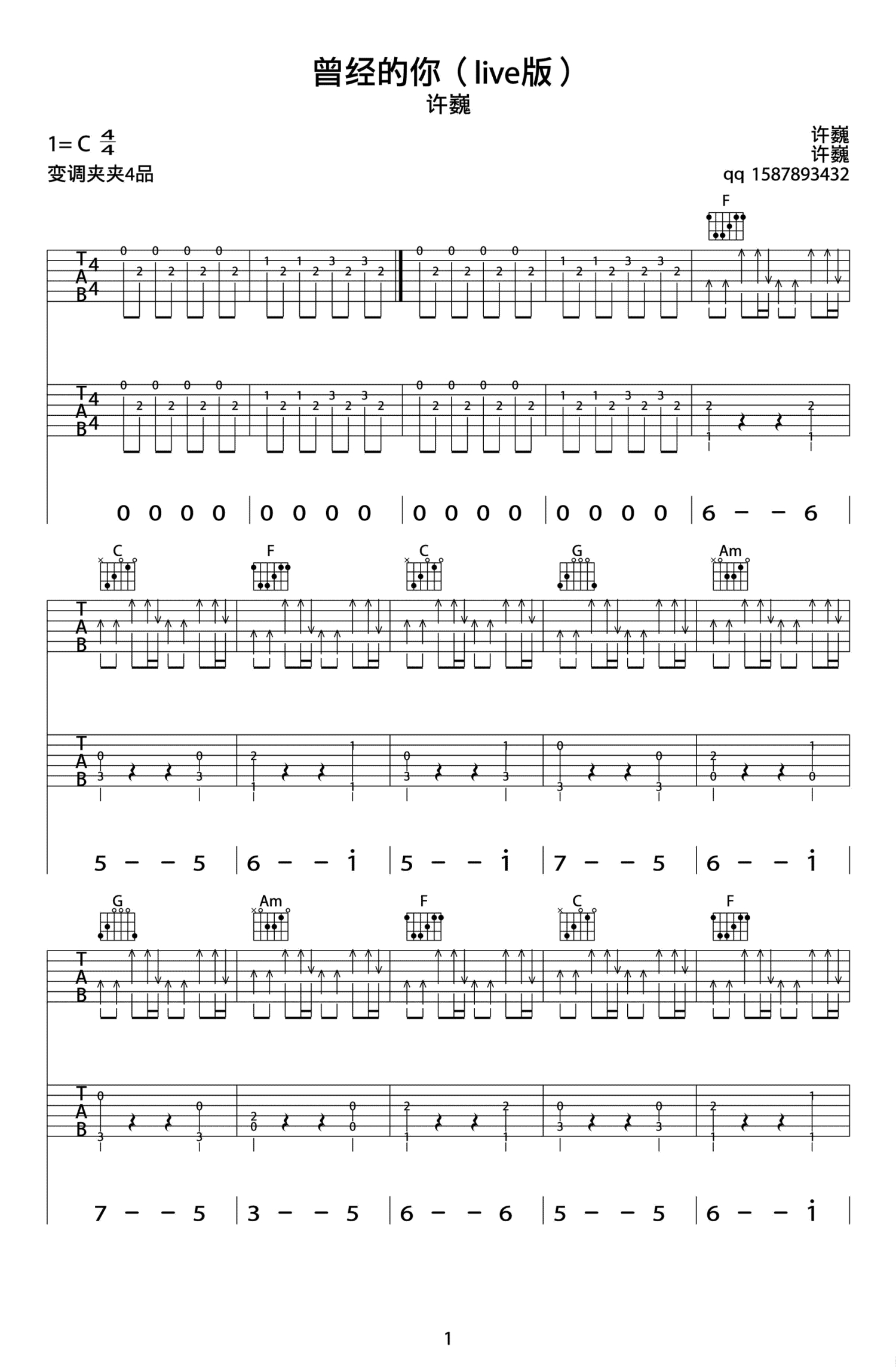曾经的你吉他谱 - 许巍 - C调吉他弹唱谱 - 演唱会LIVE版本