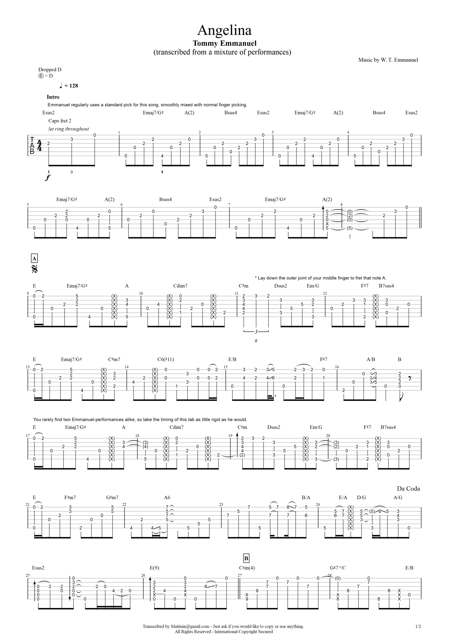 angelina吉他谱 - Tommy Emmanuel - 吉他独奏谱