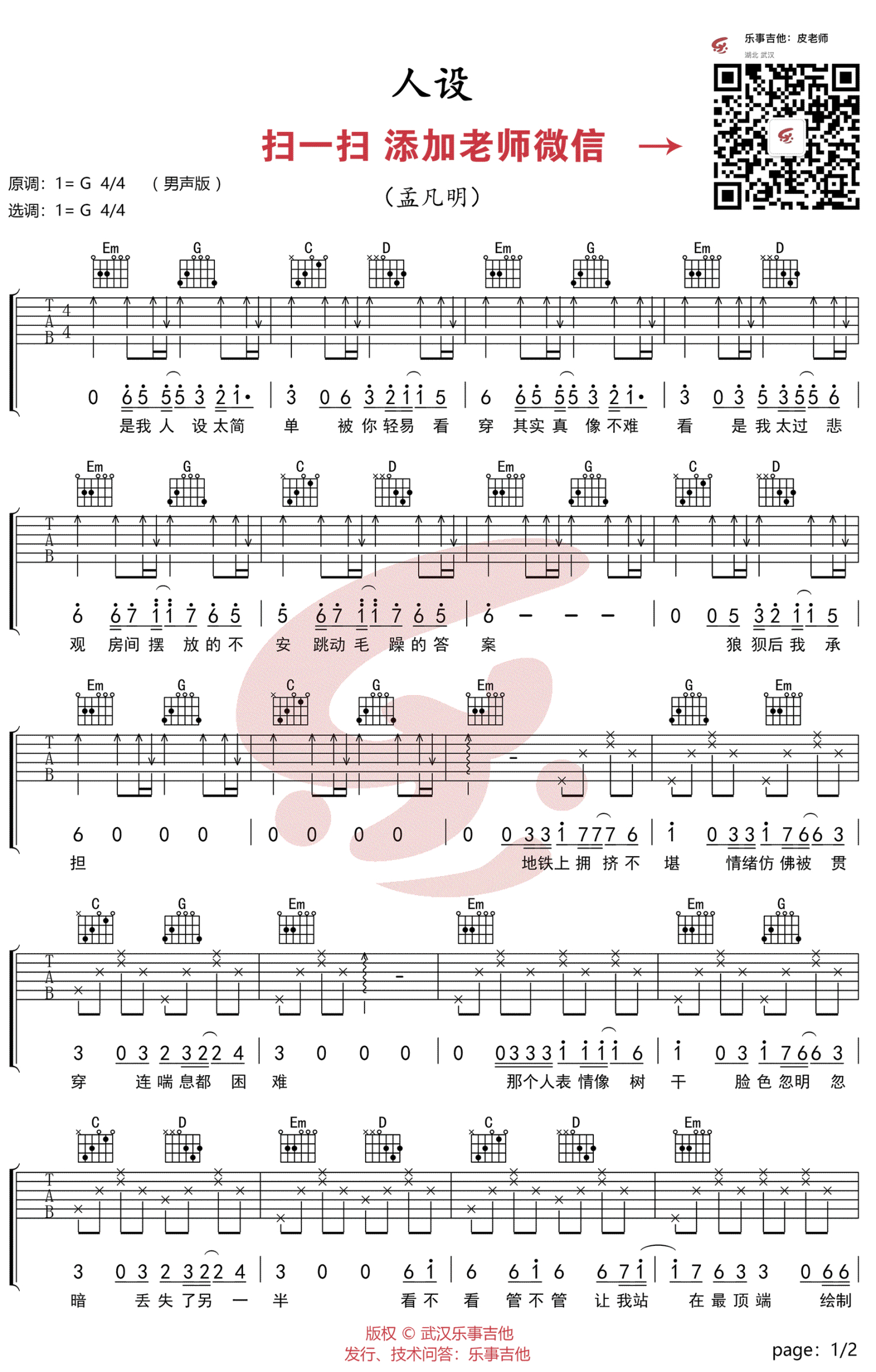 人设吉他谱 - 孟凡明 - G调吉他弹唱谱
