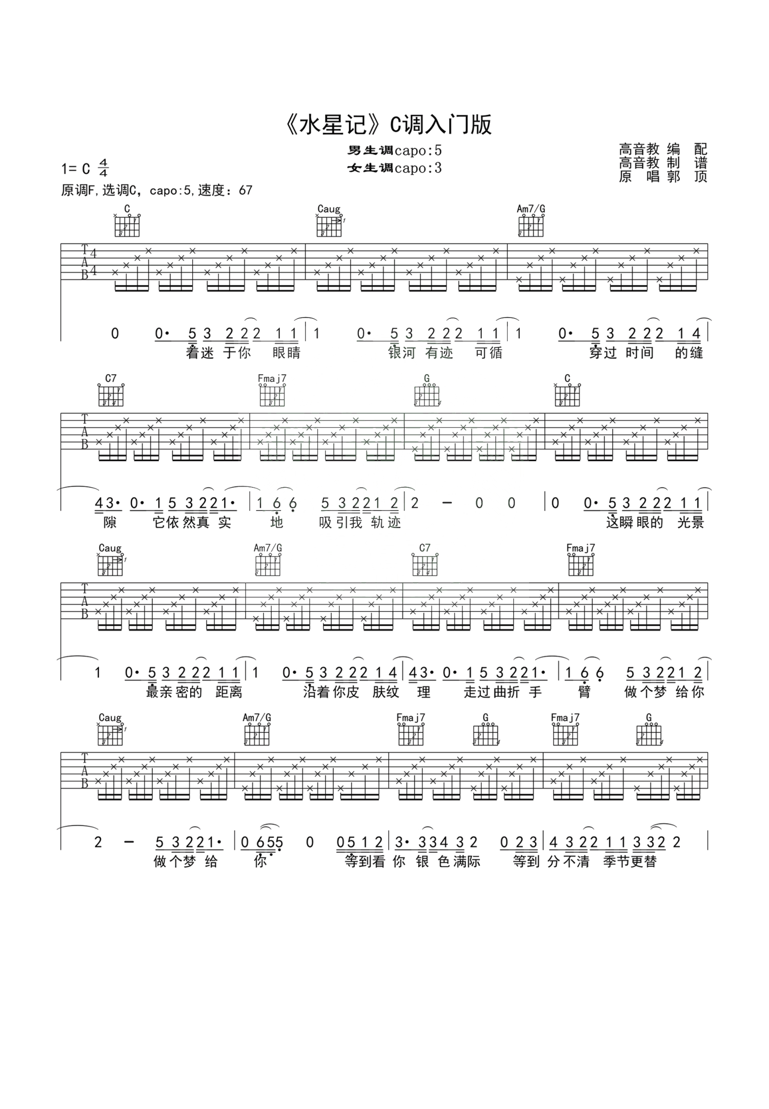 水星记吉他谱 - 郭顶 - C调吉他弹唱谱 - 入门版
