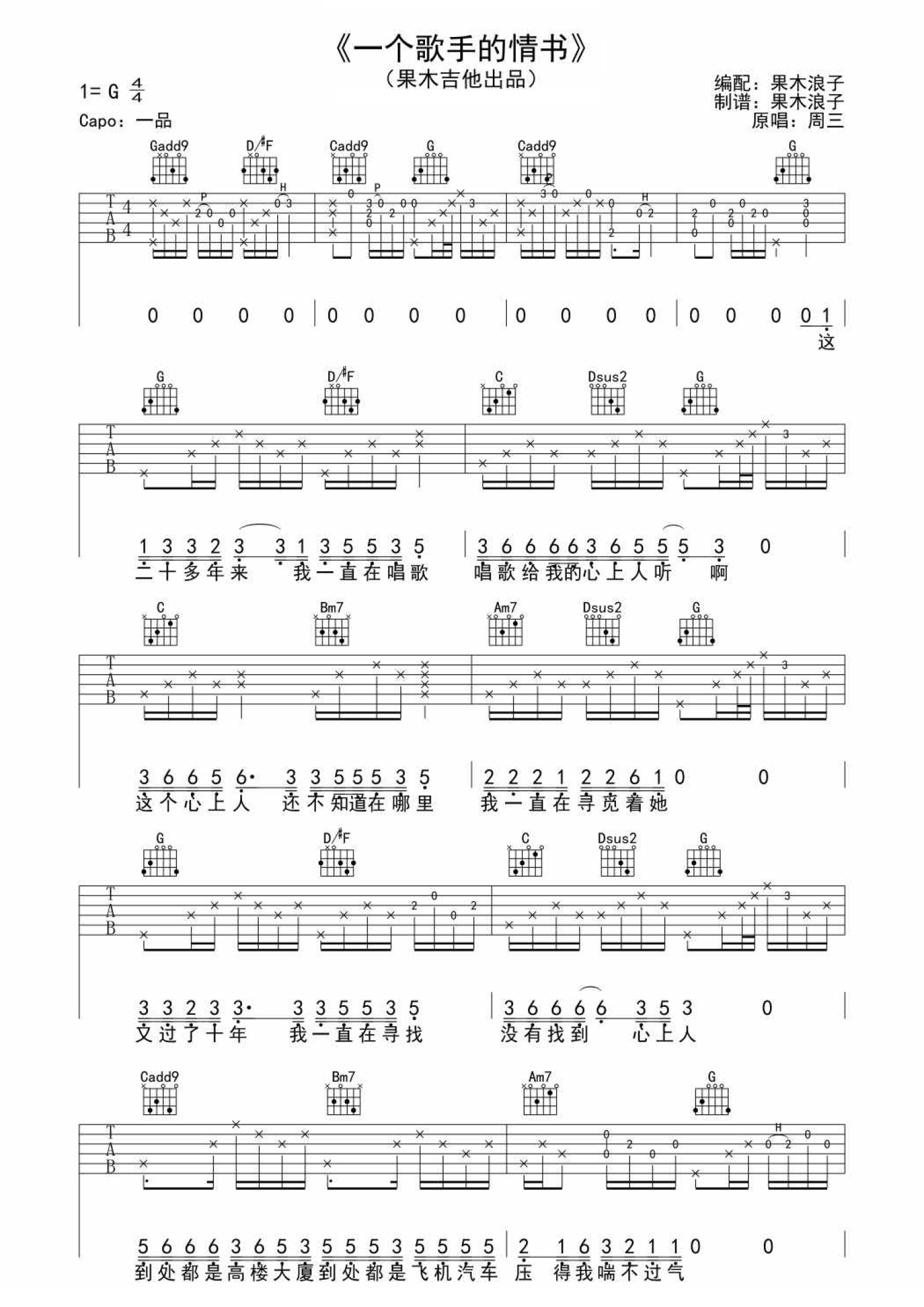 曲谱介绍: 周三一个歌手的情书吉他谱