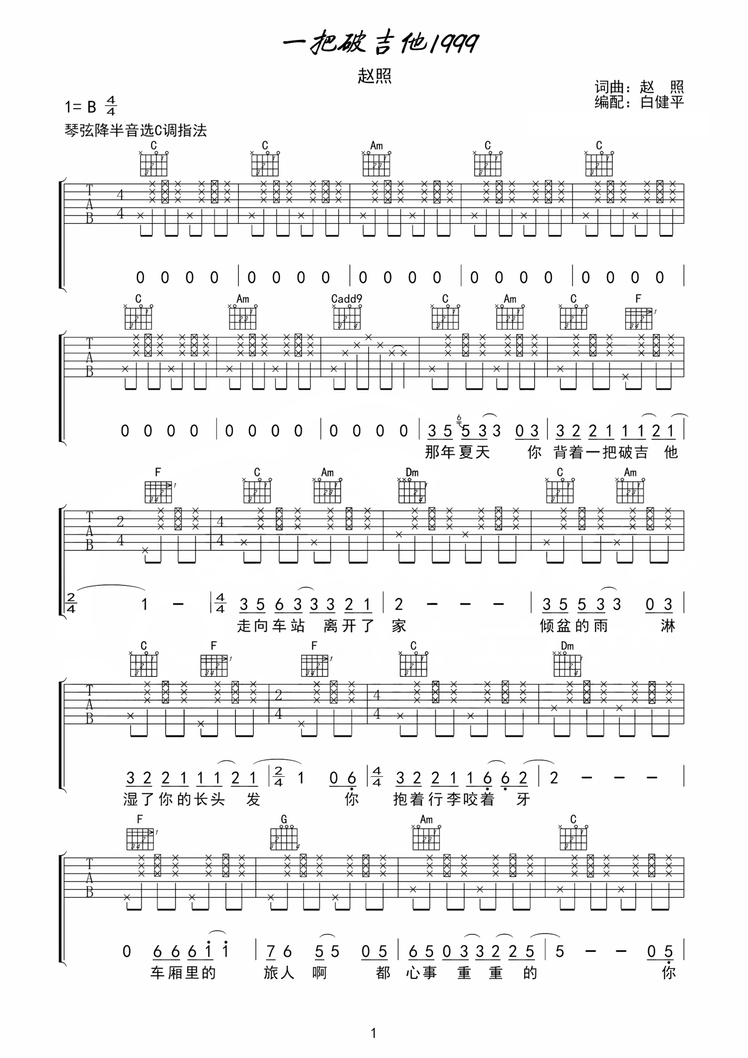 曲谱介绍: 赵照《一把破吉他》吉他谱_C调吉他弹唱谱