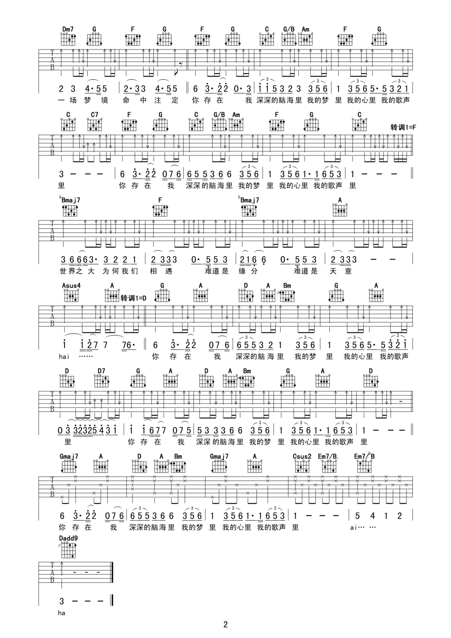当前位置:琴谱网>吉他弹唱>我的歌声里