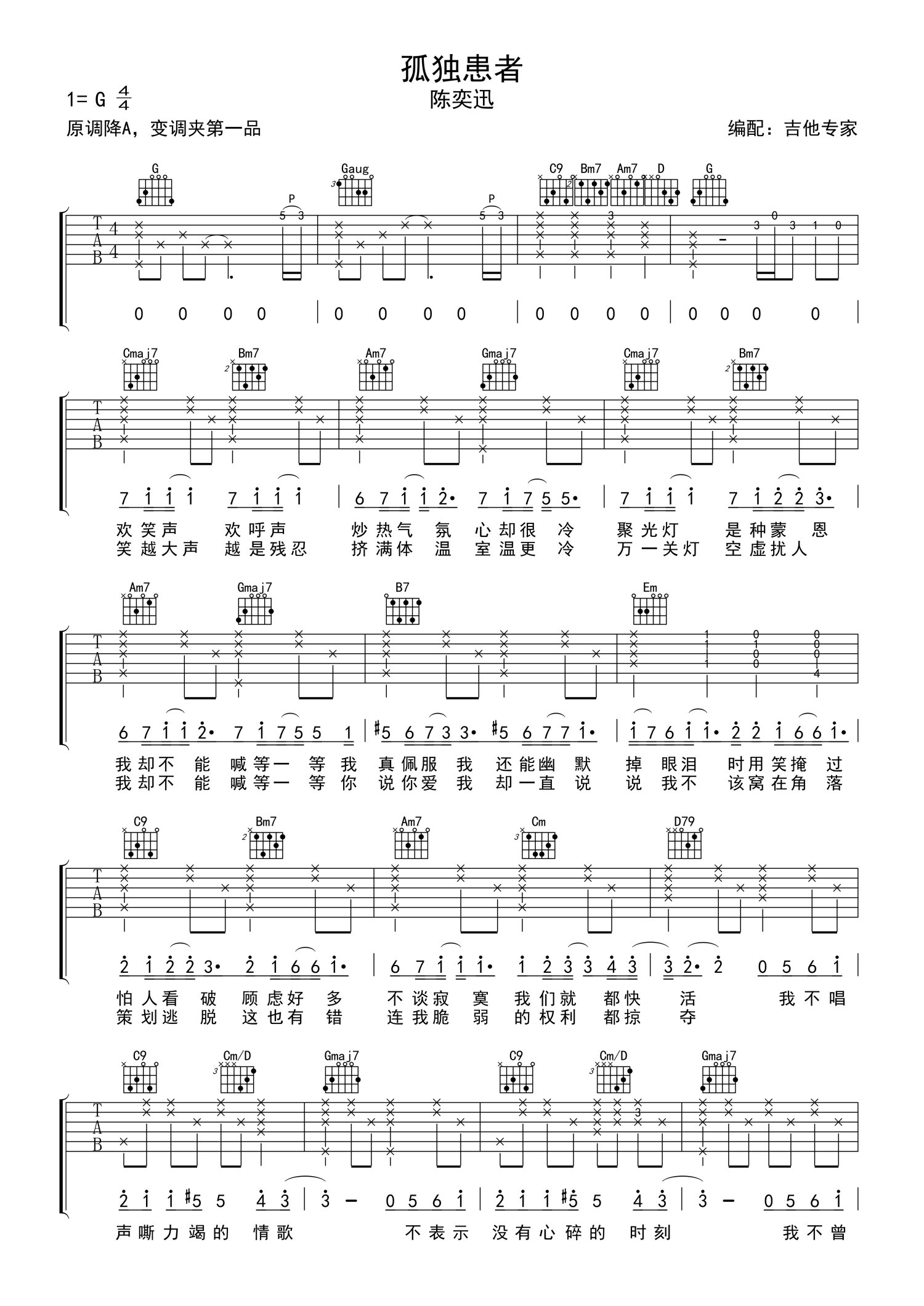 • 孤独患者吉他谱 - 陈奕迅 - G调吉他弹唱谱第1张
