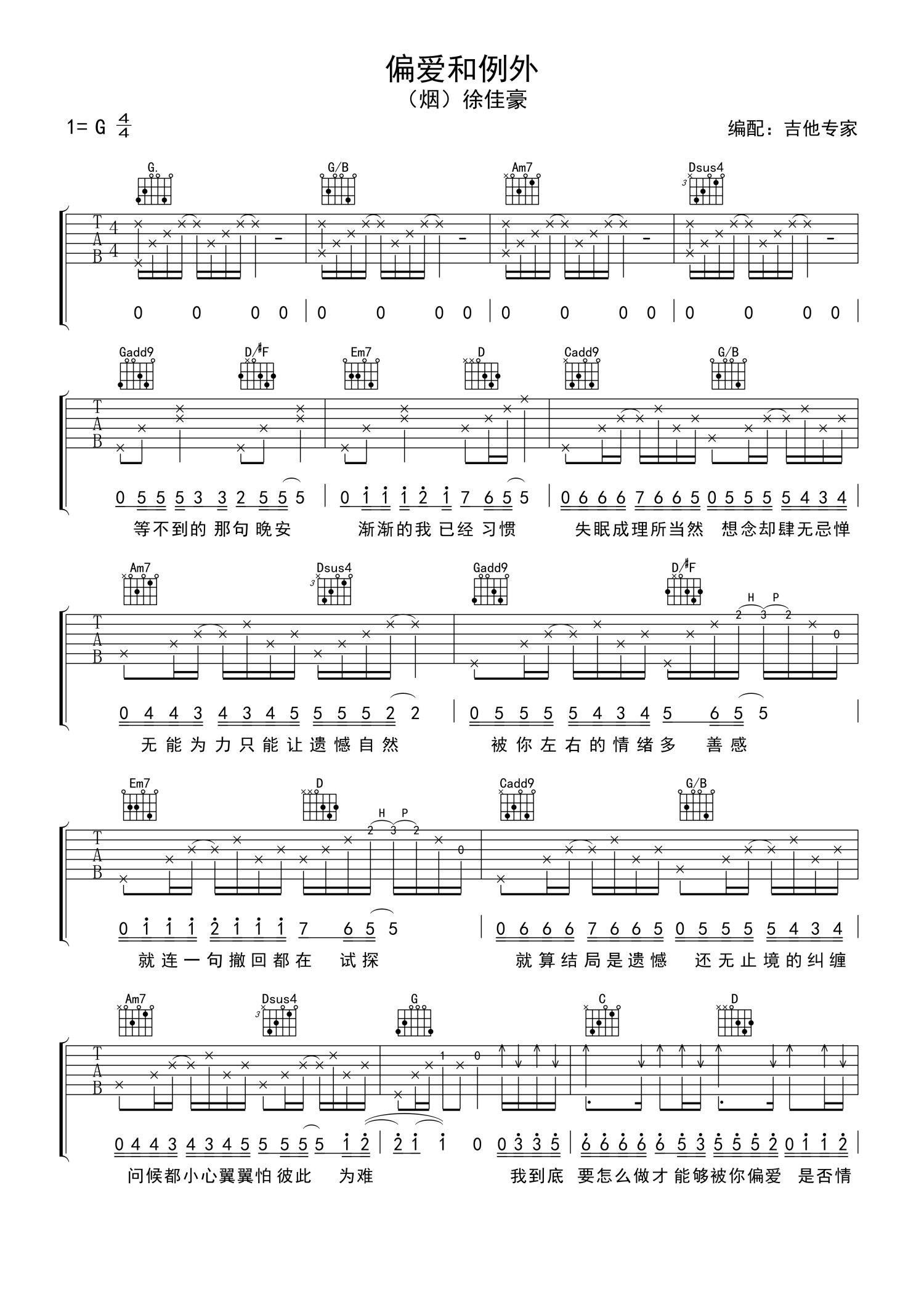 • 偏爱和例外吉他谱 - 烟(许佳豪) - G调吉他弹唱谱第1张