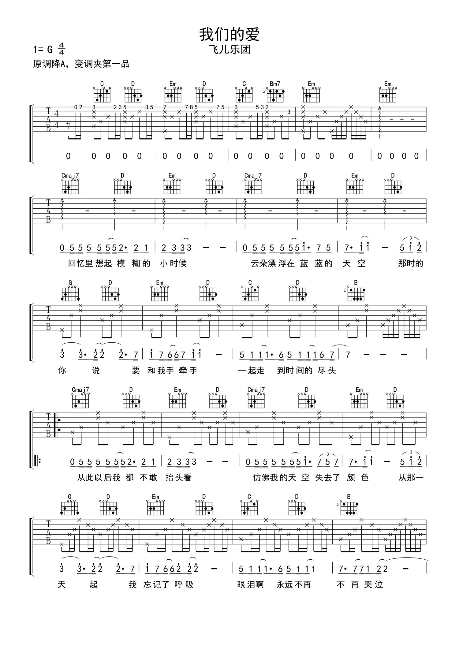 • 我们的爱吉他谱 - 飞儿乐团 - G调吉他弹唱谱第1张