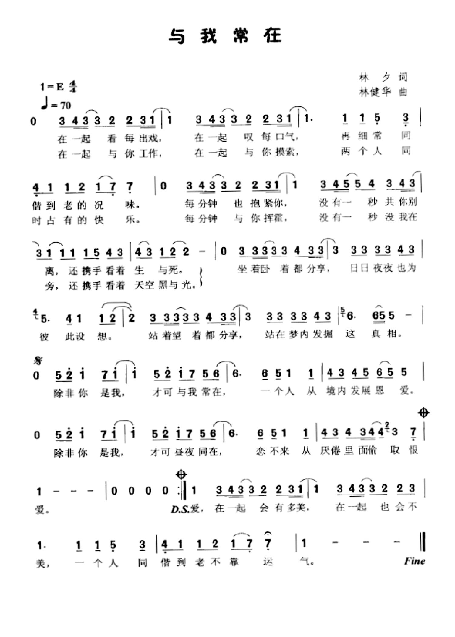 曲谱介绍: 《与我常在》歌词_简谱