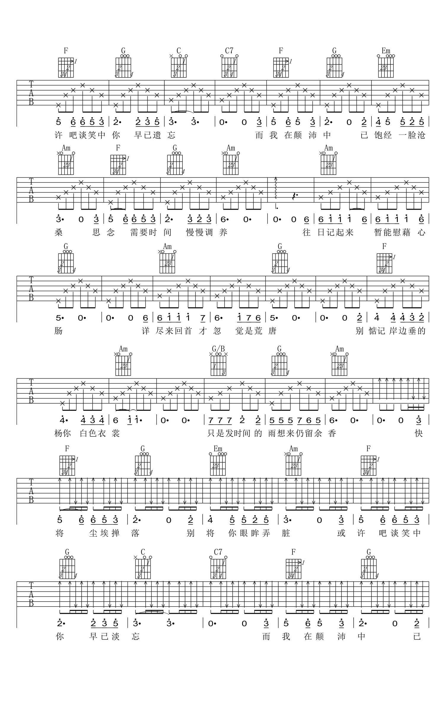 当前位置:琴谱网>吉他弹唱>余香