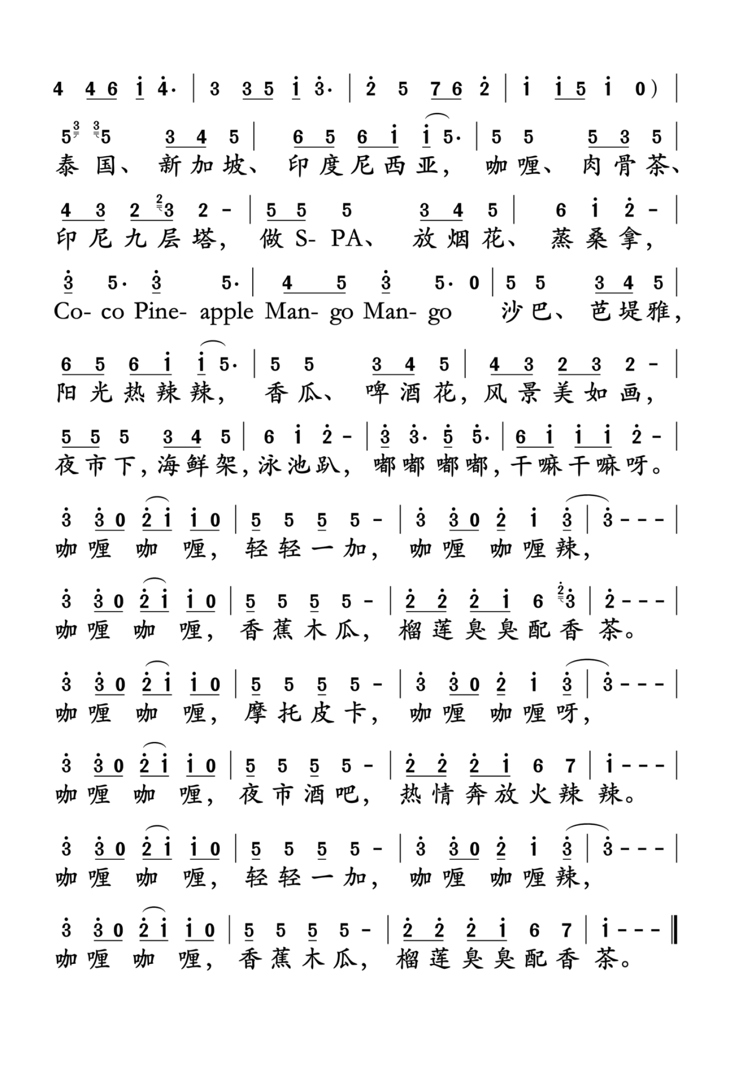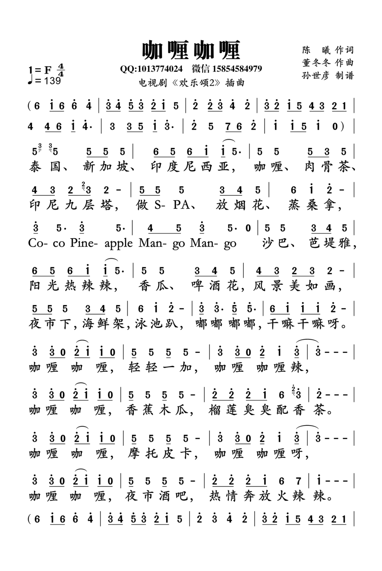 曲谱介绍: 欢乐颂2《咖喱咖喱》歌词_简谱