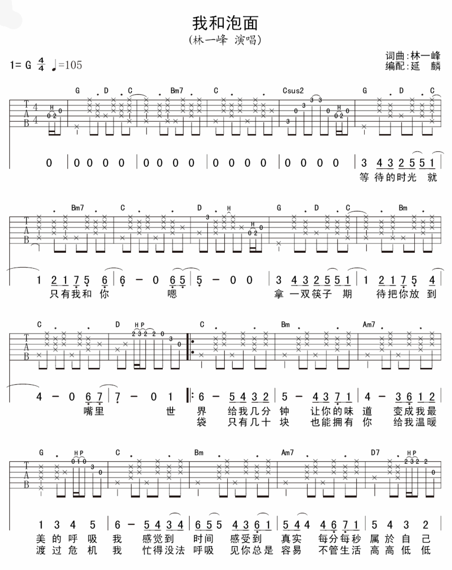 我和泡面吉他谱 - 林一峰 - G调吉他弹唱谱