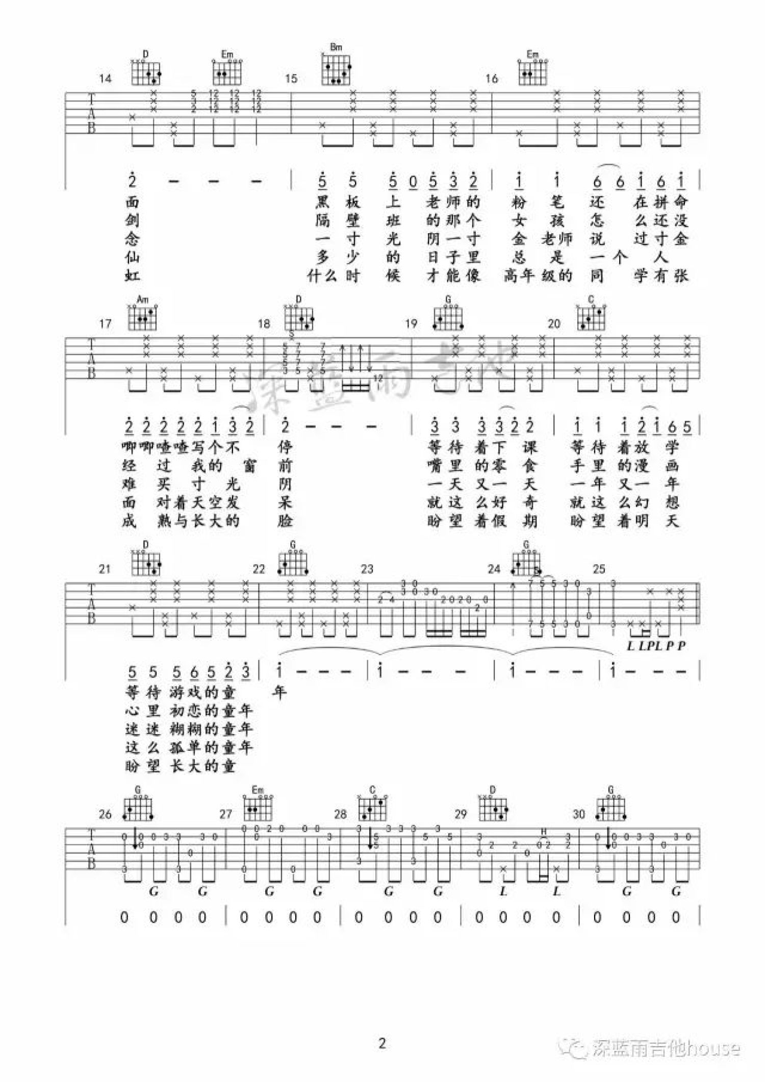 当前位置:琴谱网>吉他弹唱>童年