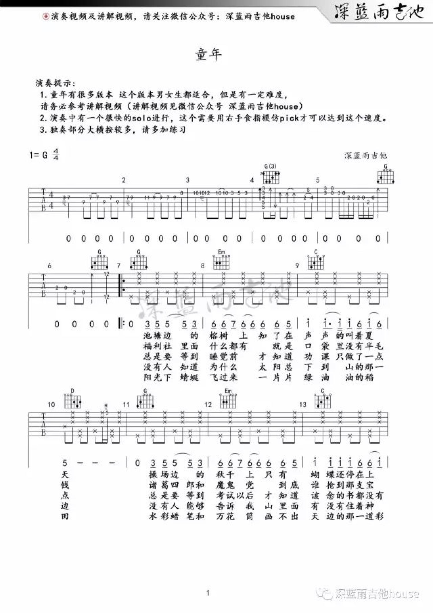 吉他弹唱G调来源:深蓝雨吉他461 浏览2022-02-17 20:35发布图谱共3页