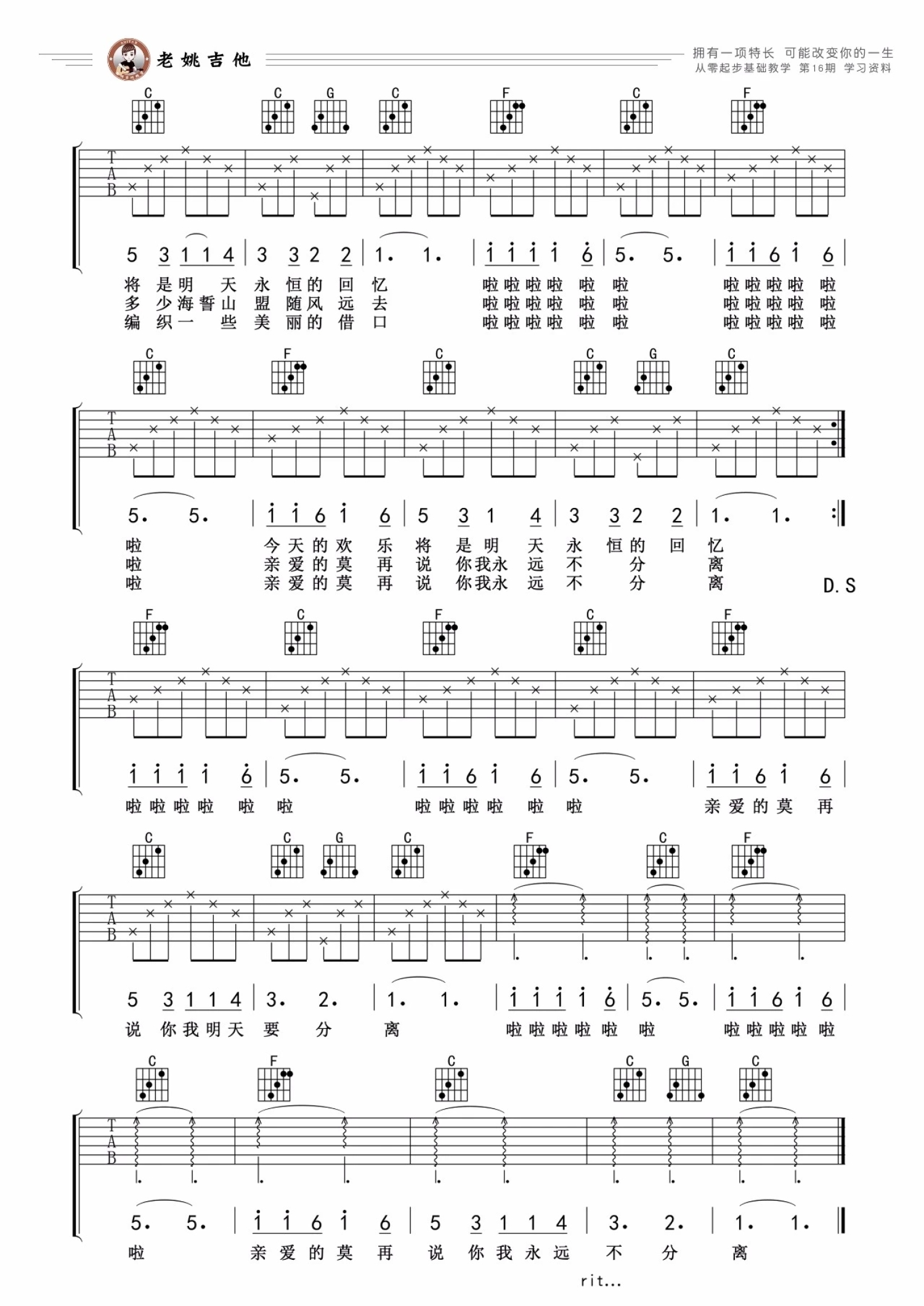 吉他弹唱C调来源:老姚吉他709 浏览2022-02-18 14:39发布图谱共2页