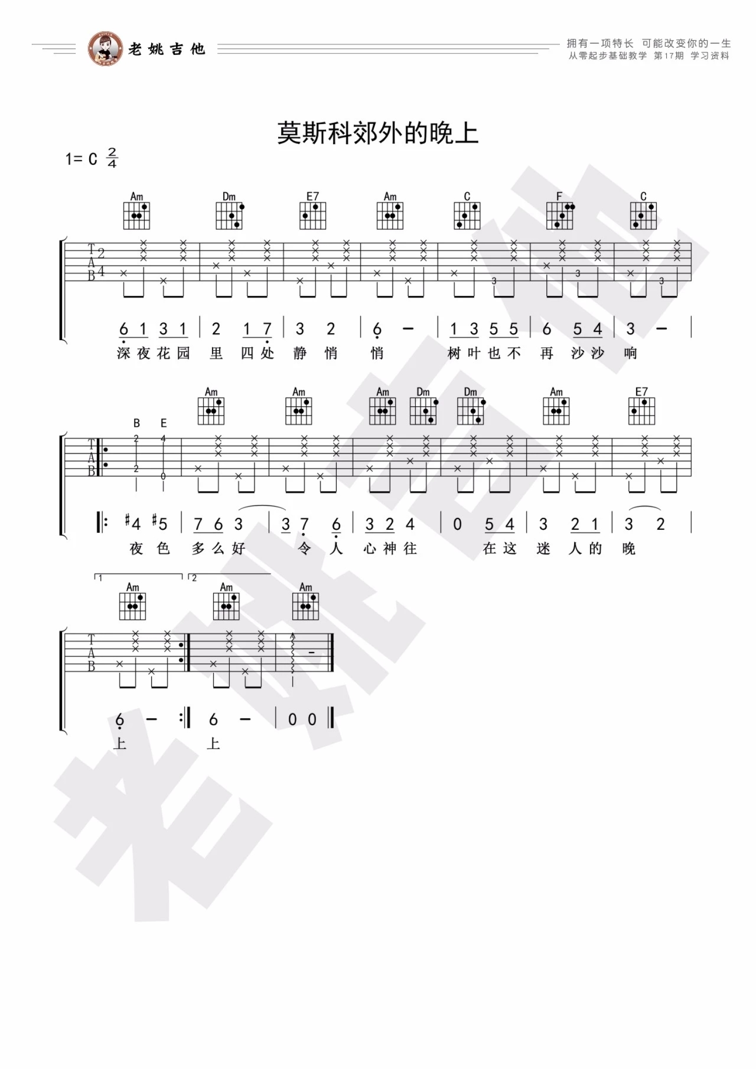 曲谱介绍: 廖昌永《莫斯科郊外的晚上》吉他谱_C调吉他弹唱谱