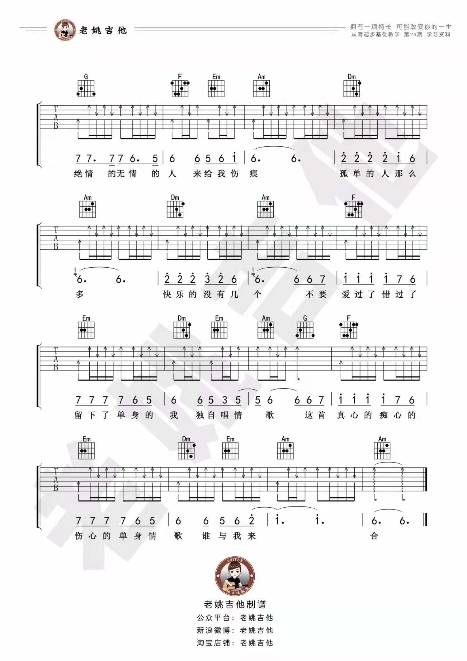 当前位置:琴谱网>吉他弹唱>单身情歌