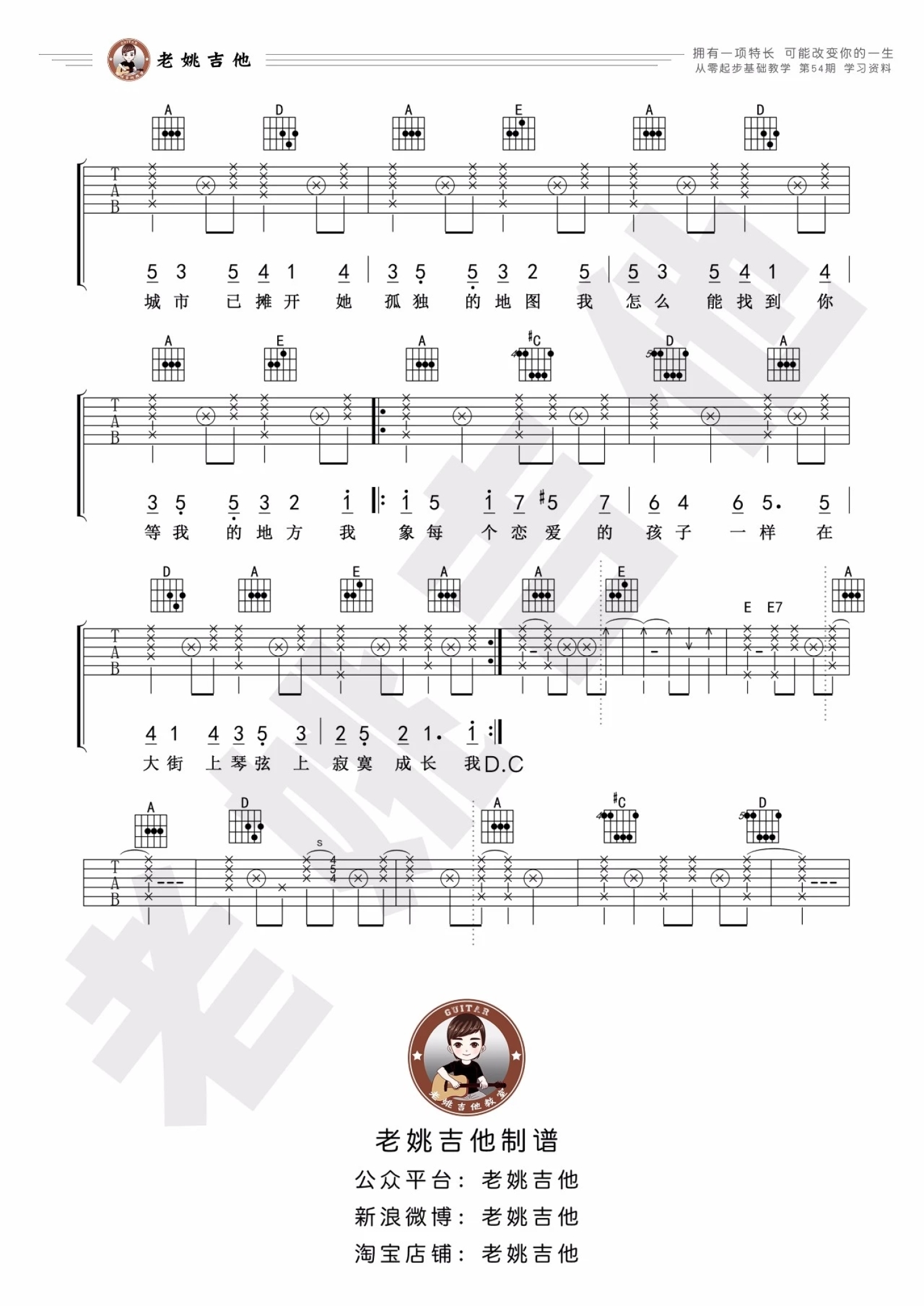 吉他弹唱A调来源:老姚吉他588 浏览2022-02-18 17:37发布图谱共2页