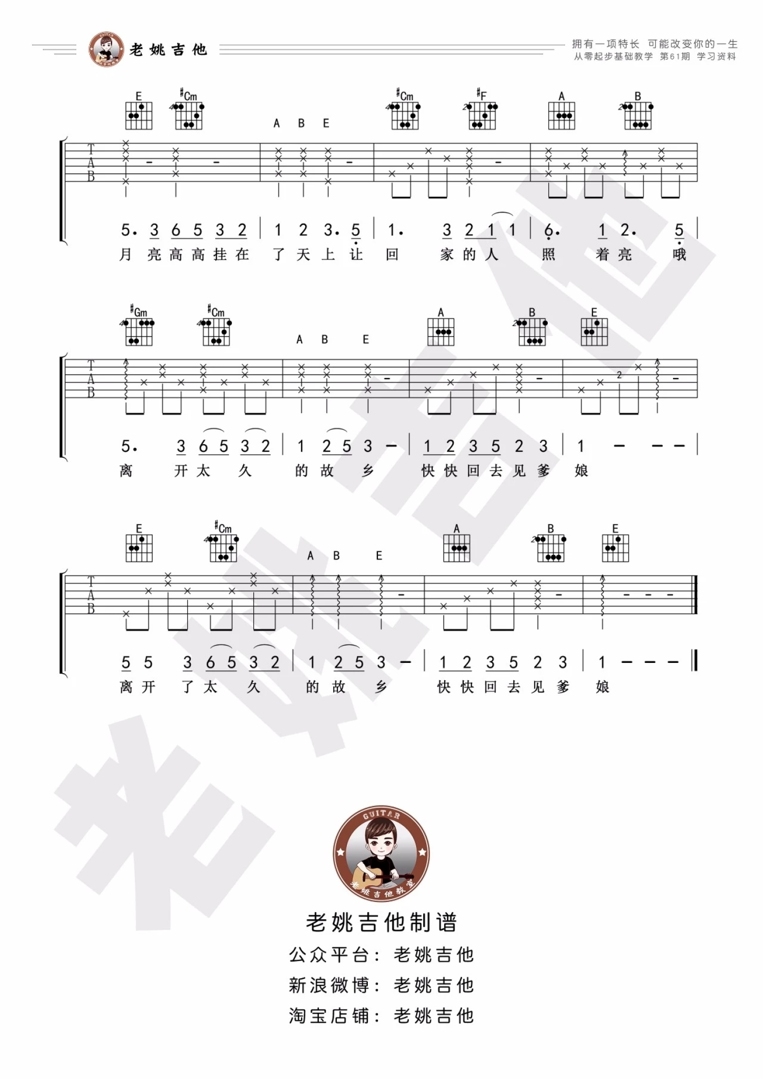 吉他弹唱E调来源:老姚吉他738 浏览2022-02-18 17:35发布图谱共3页