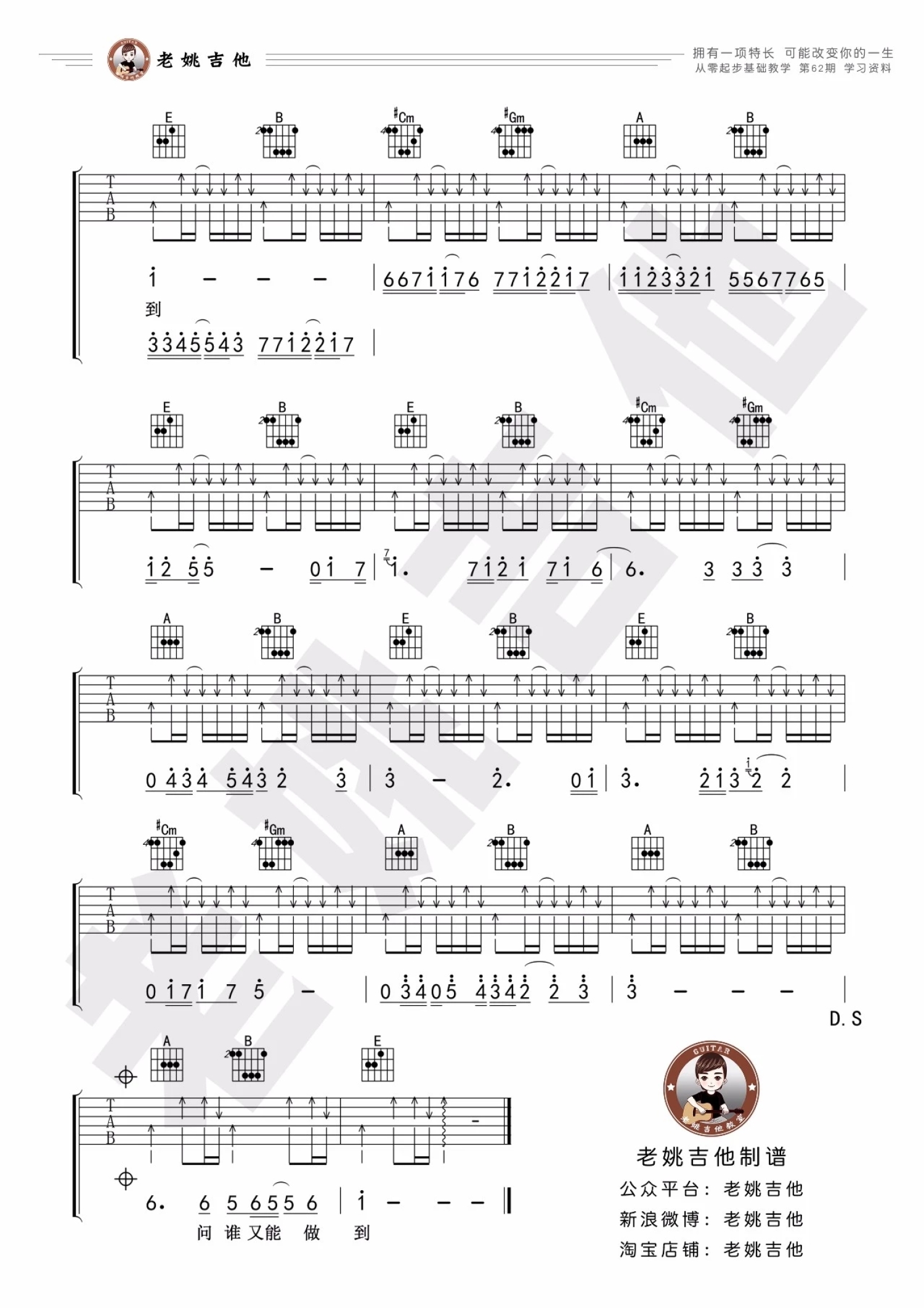 吉他弹唱E调来源:老姚吉他1122 浏览2022-02-18 15:42发布图谱共3页