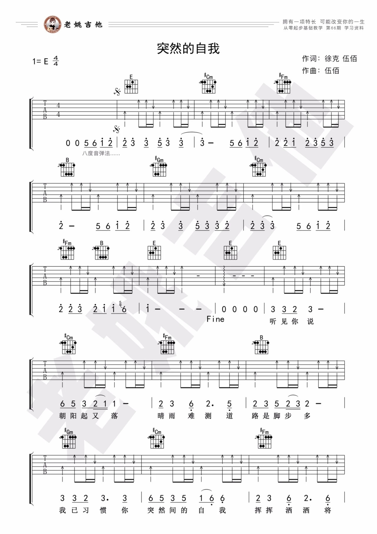 突然的自我吉他谱 - 伍佰 - E调吉他弹唱谱