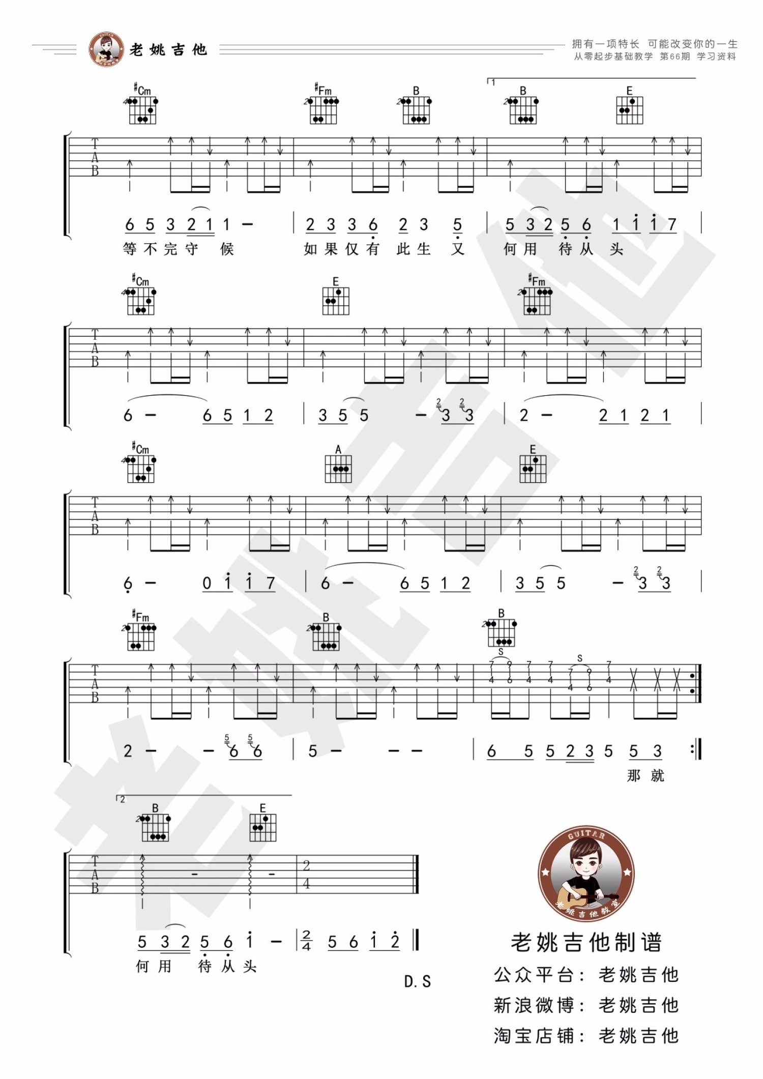 吉他弹唱E调来源:老姚吉他1345 浏览2022-07-01 19:48发布图谱共3页