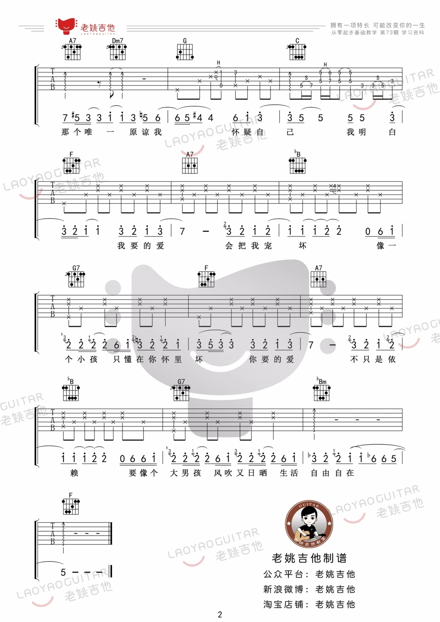 吉他弹唱F调来源:老姚吉他395 浏览2022-02-18 17:33发布图谱共2页