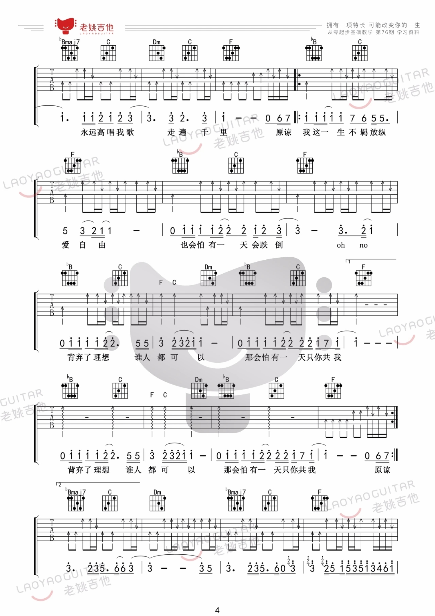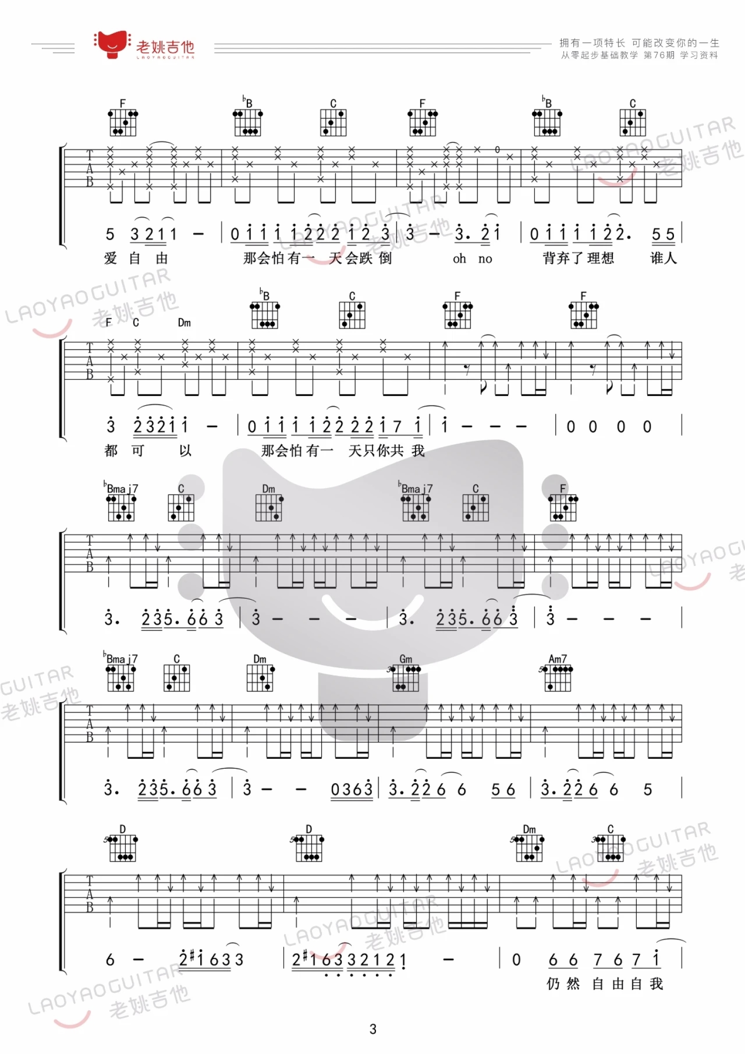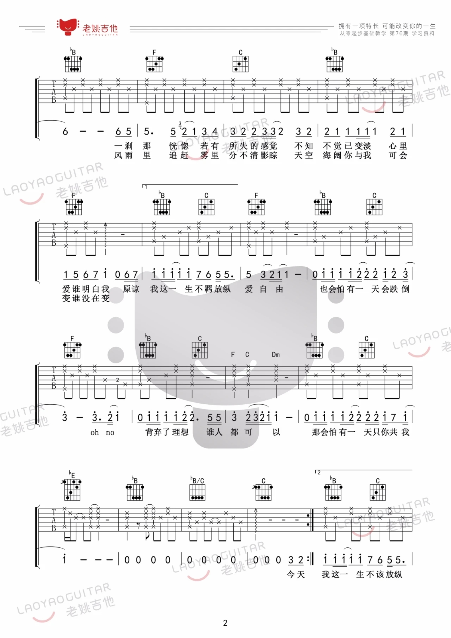 吉他弹唱F调来源:老姚吉他11698 浏览2022-02-18 17:30发布图谱共5页
