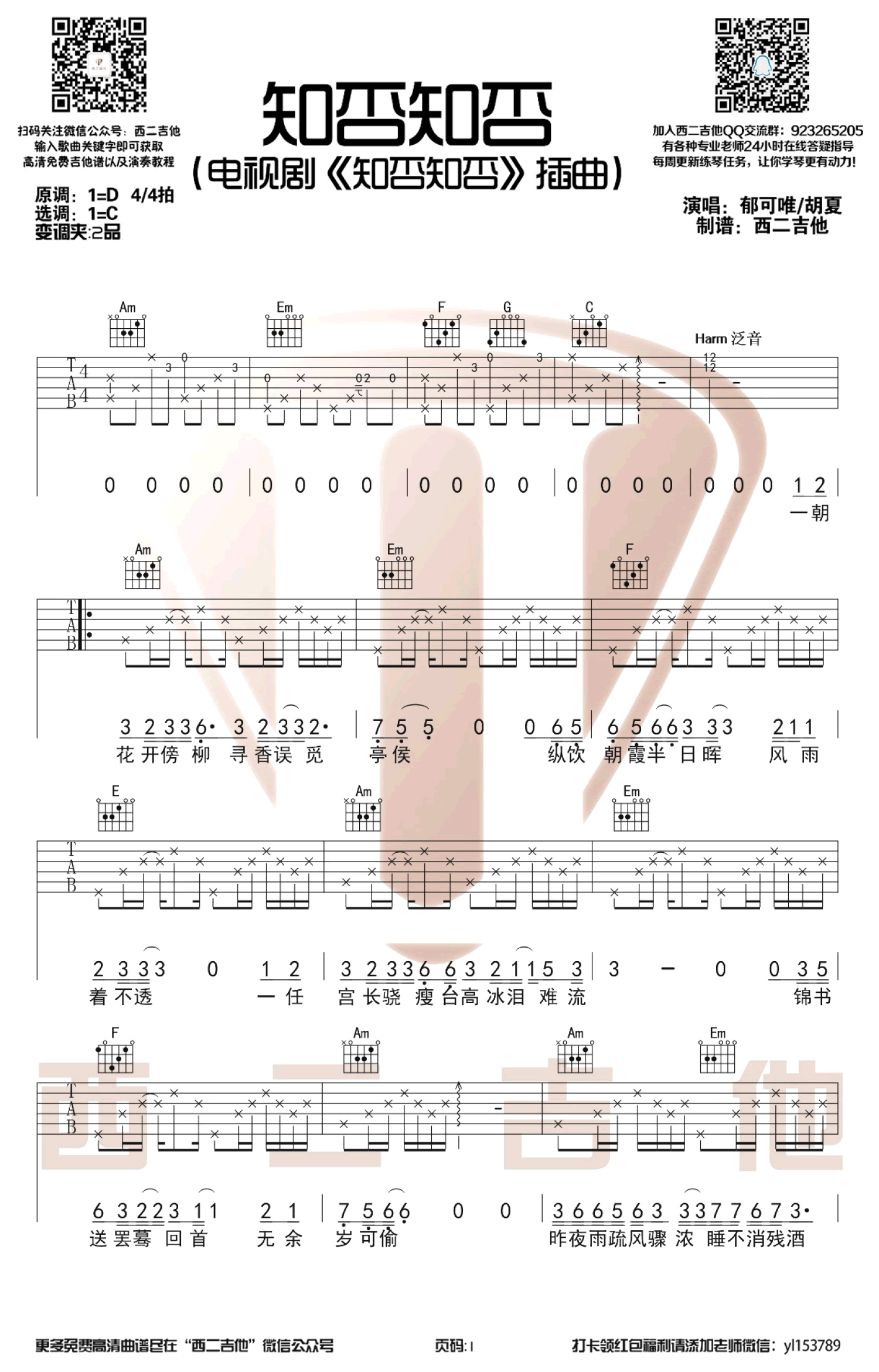 知否知否吉他谱 - 郁可唯/胡夏 - C调吉他弹唱谱
