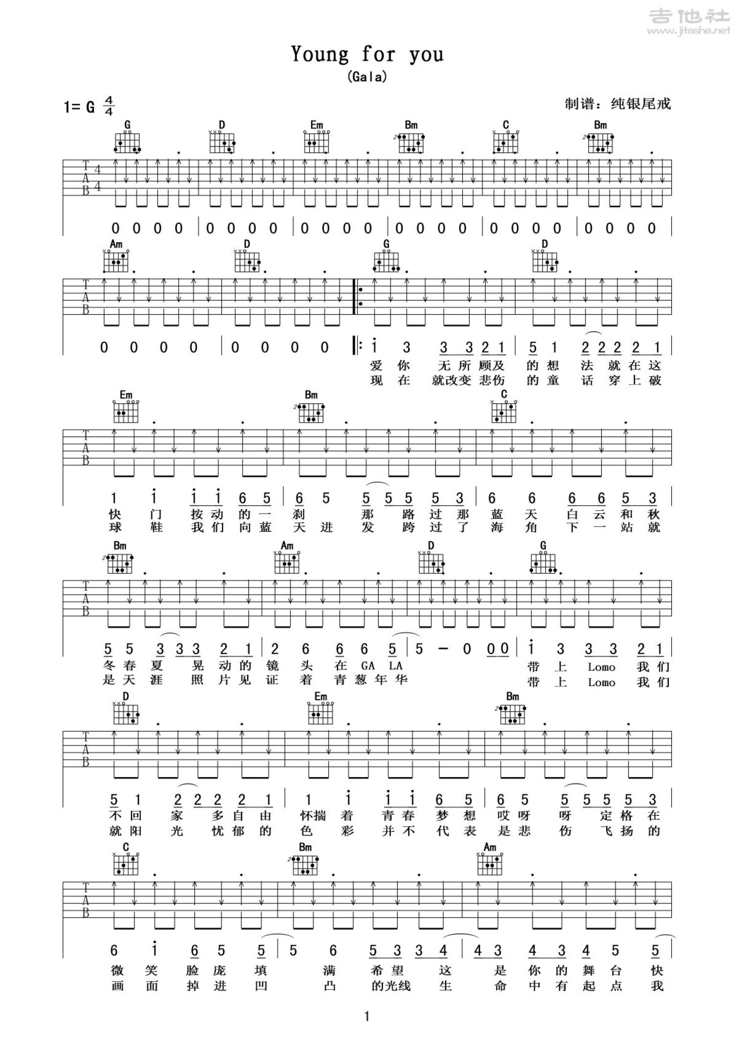 Young for you吉他谱 - Gala - G调吉他弹唱谱 - 扫弦中文版