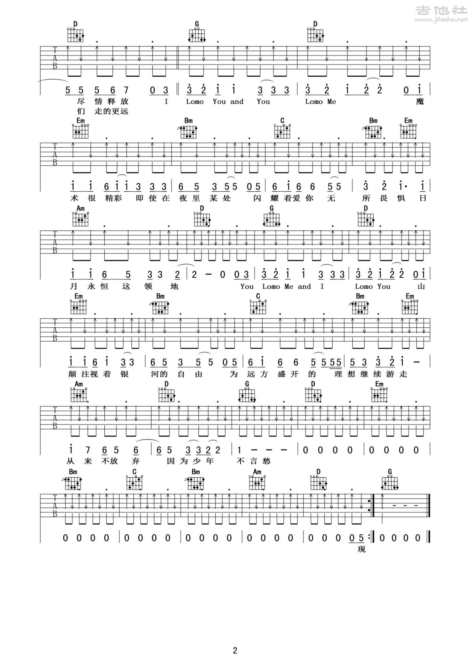 曲谱介绍: Youngforyou吉他谱(图片谱,弹唱,扫弦,中文版)
