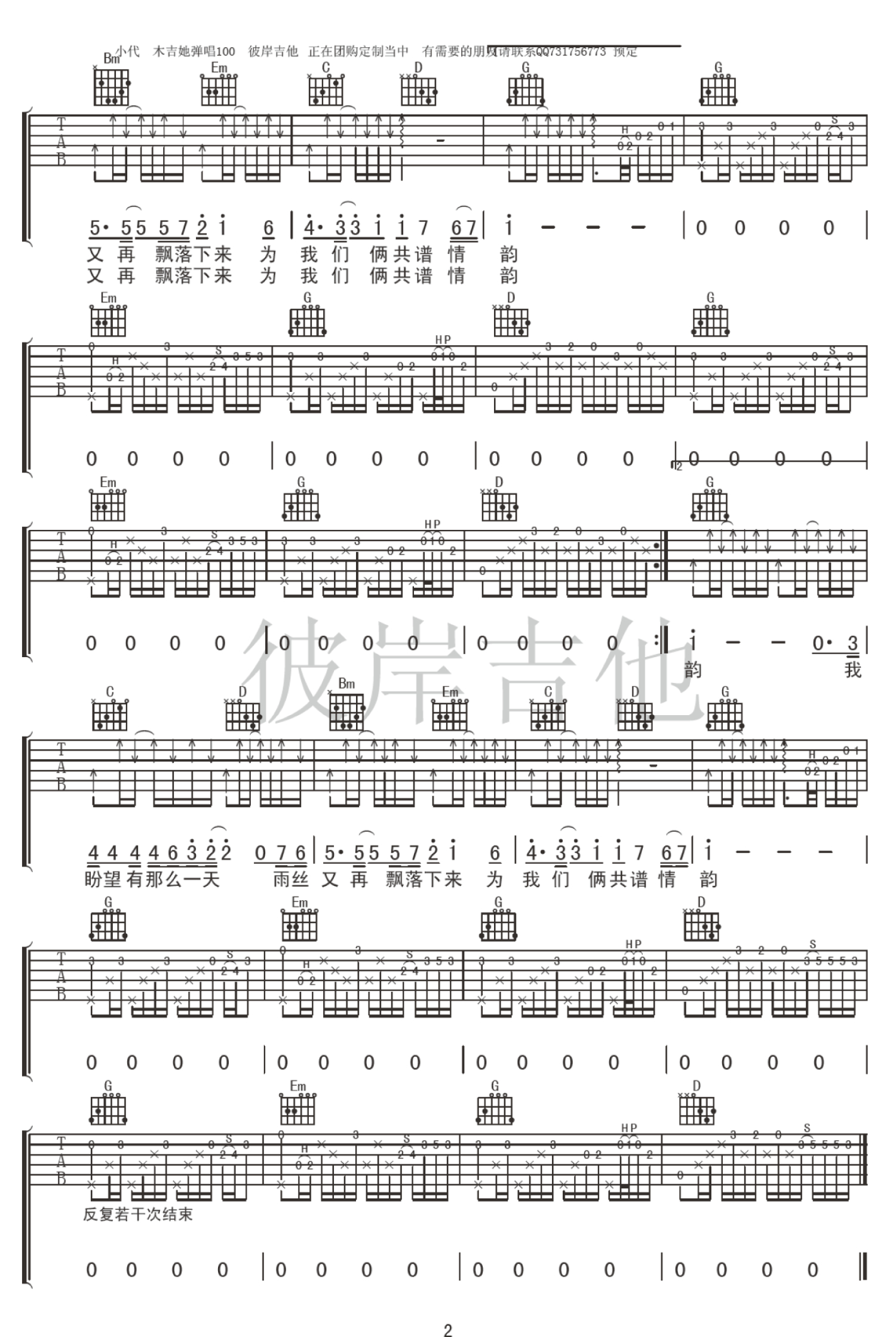 吉他弹唱G调来源:彼岸吉他-小代1434 浏览2021-08-28 10:13发布图谱共2页