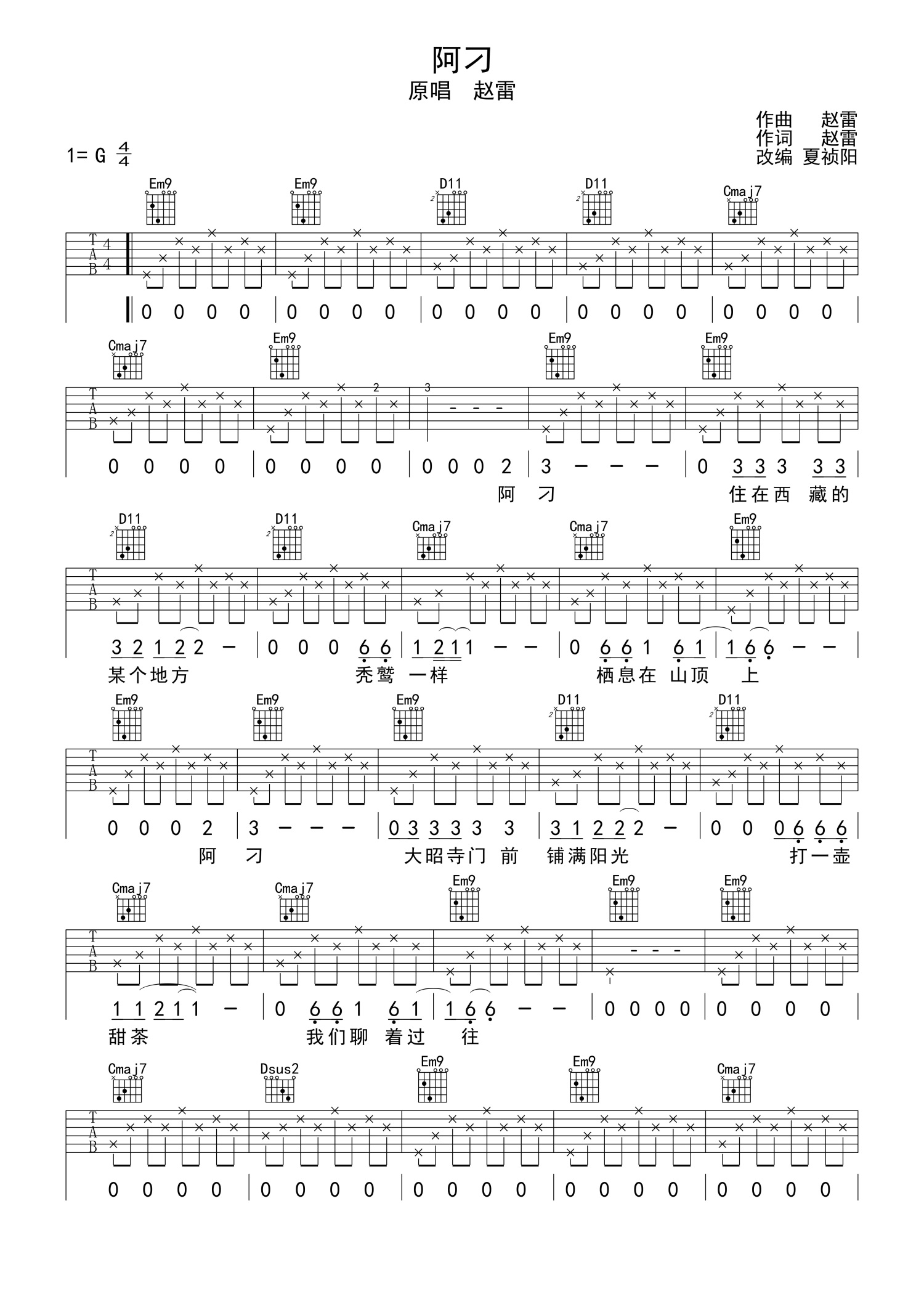 阿刁吉他谱 - 赵雷/张韶涵 - G调吉他弹唱谱