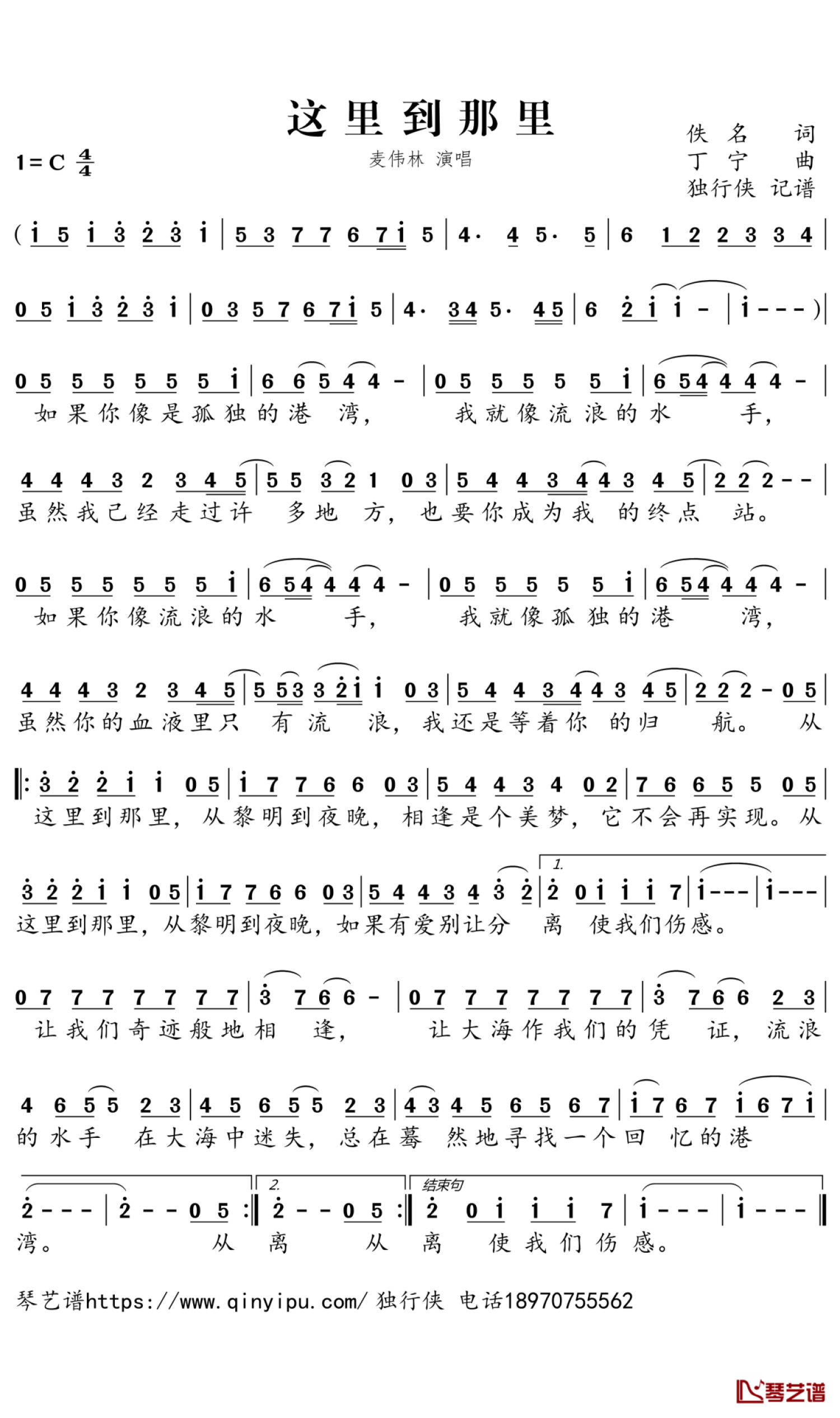 曲谱介绍: 麦伟林《这里到那里》歌词_简谱
