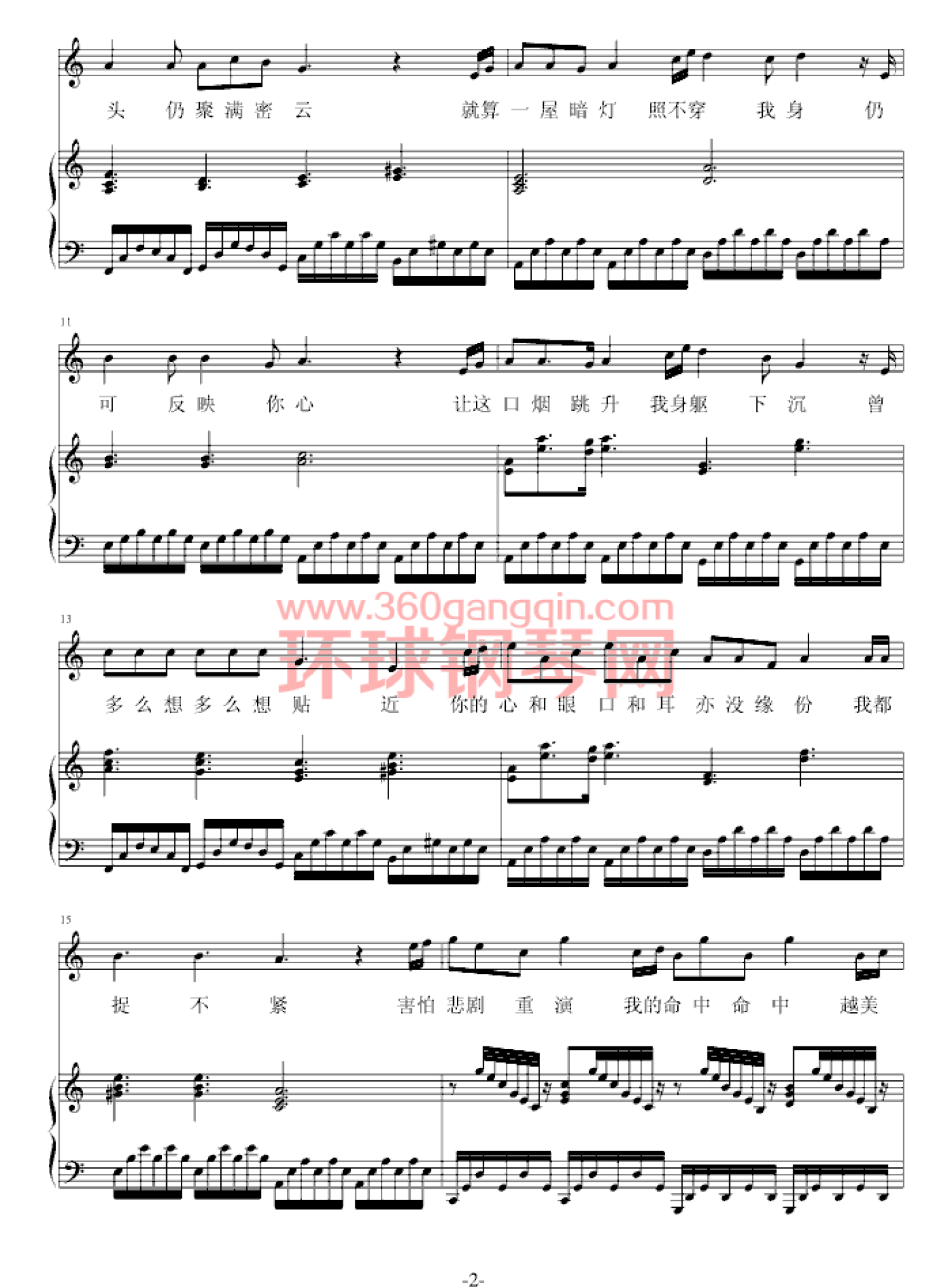 暗涌钢琴谱 - 王菲 - 弹唱版