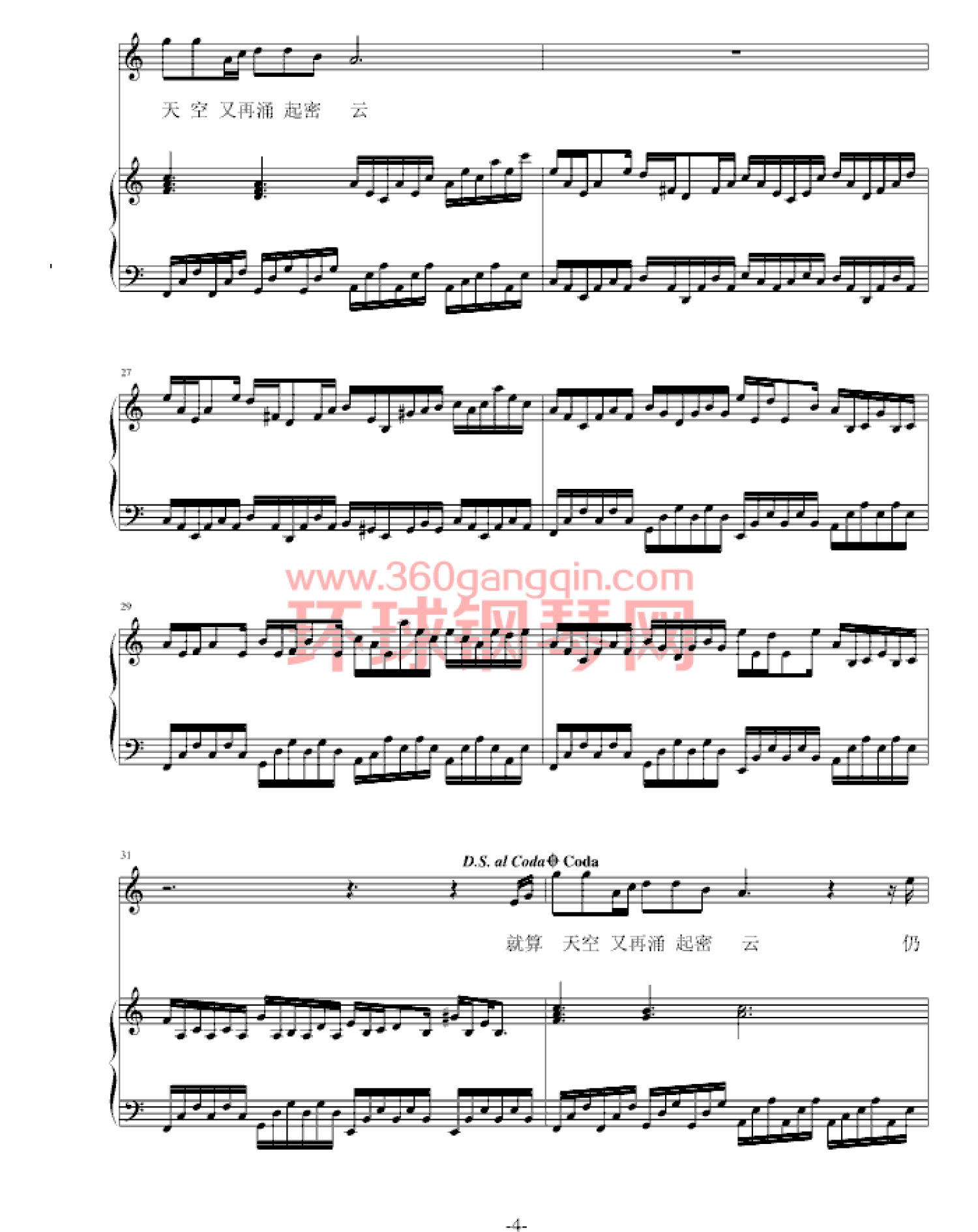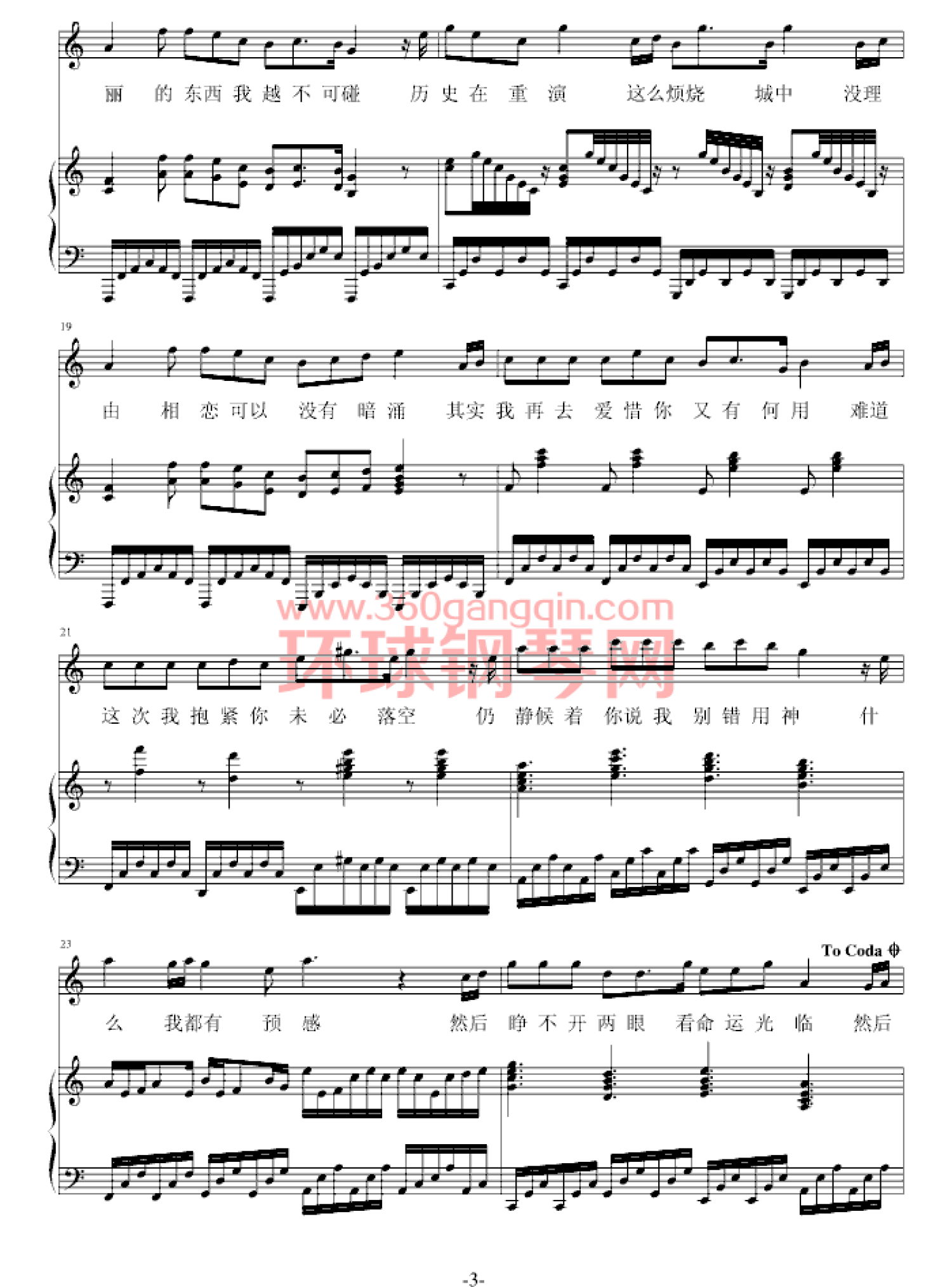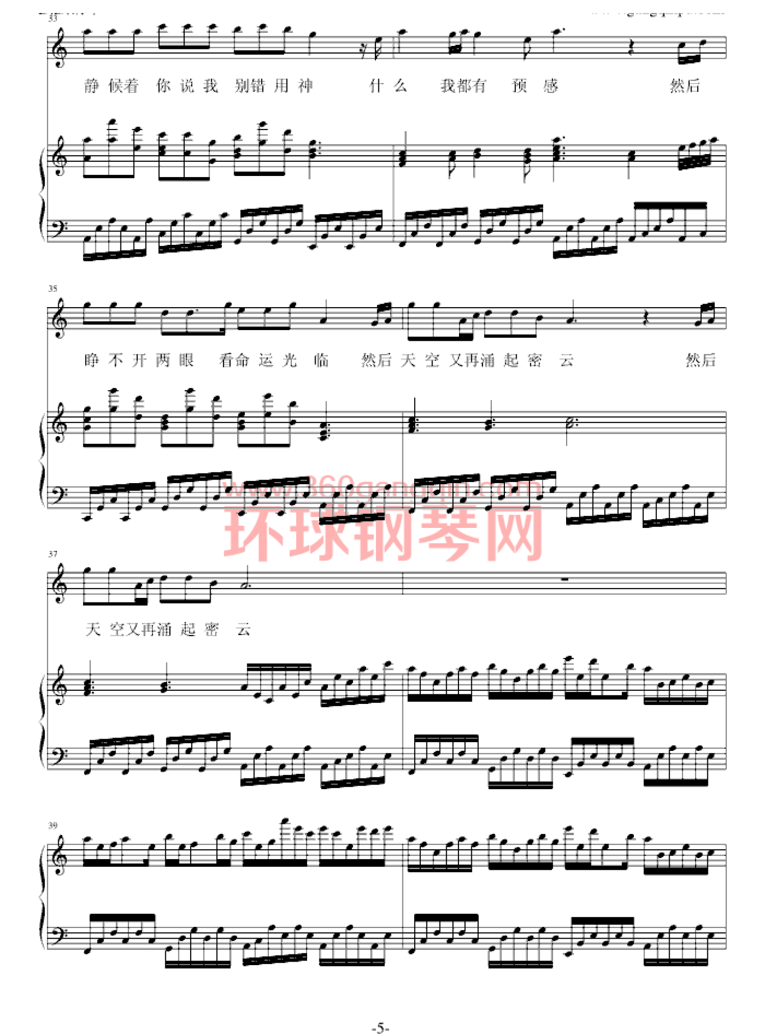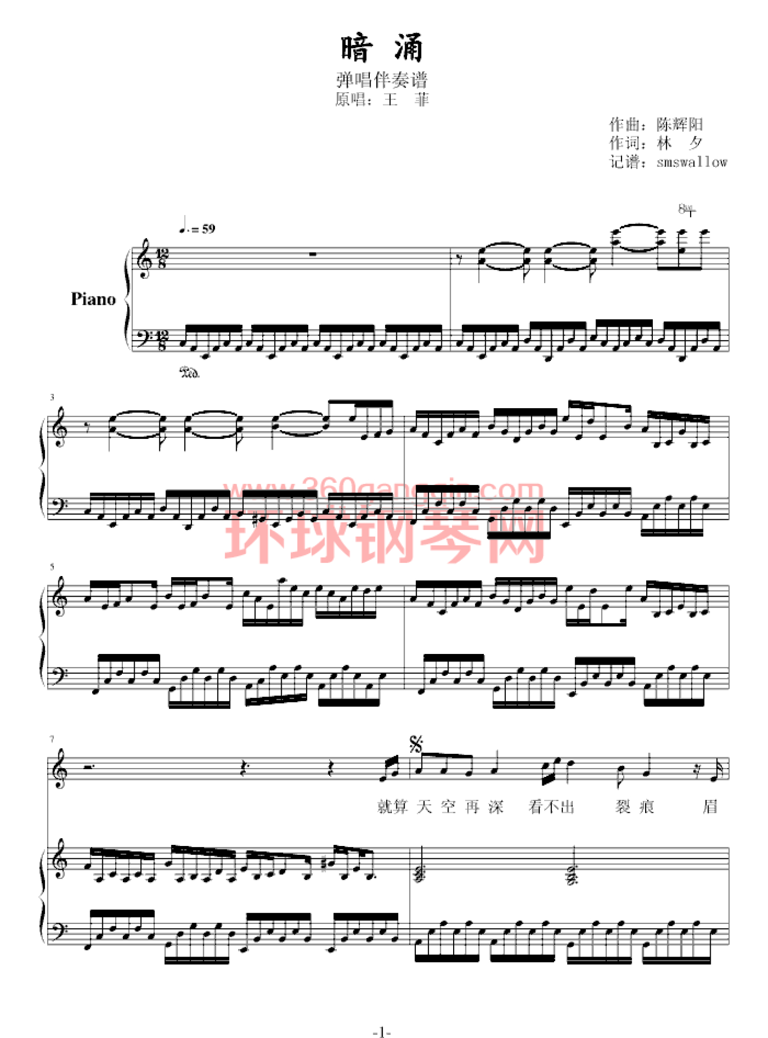 曲谱介绍: 钢琴谱暗涌(弹唱版)-王菲