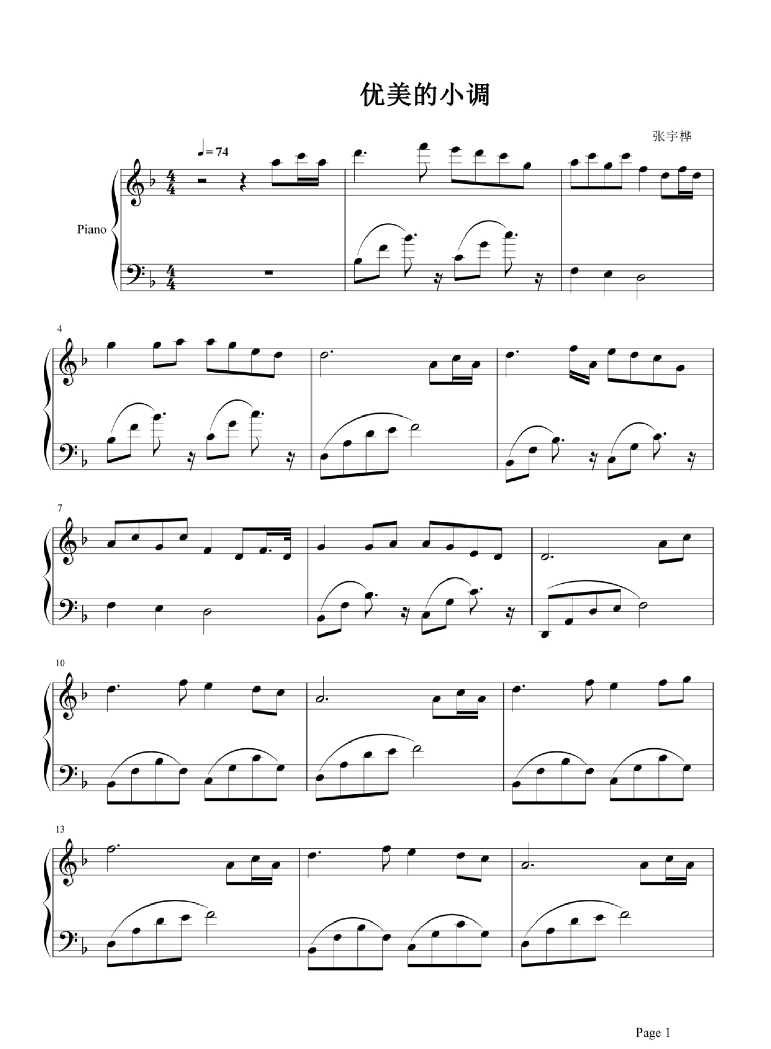曲谱介绍:  人有时候远视了,忽略离我们最近的人;有时候近视了,模糊离我们最近的幸福。 幸福应该无处不在,无论是纯粹的生活,还是经常迷路的灵魂,如同张宇桦的这曲《优美的小调》,忧伤而快乐。  这首张宇桦《优美的小调》是资深音乐制作人张宇桦创作的钢琴曲。清澈的旋律如水般流淌,简单重复的音律,清脆,流畅,优美,但却似有似无地散发出一缕缕愁绪,缓缓缠绕心尖,令人欲罢不能。  静静地听着钢琴曲,看一本书,喝一杯咖啡,美好的生活从优美的小调开始。