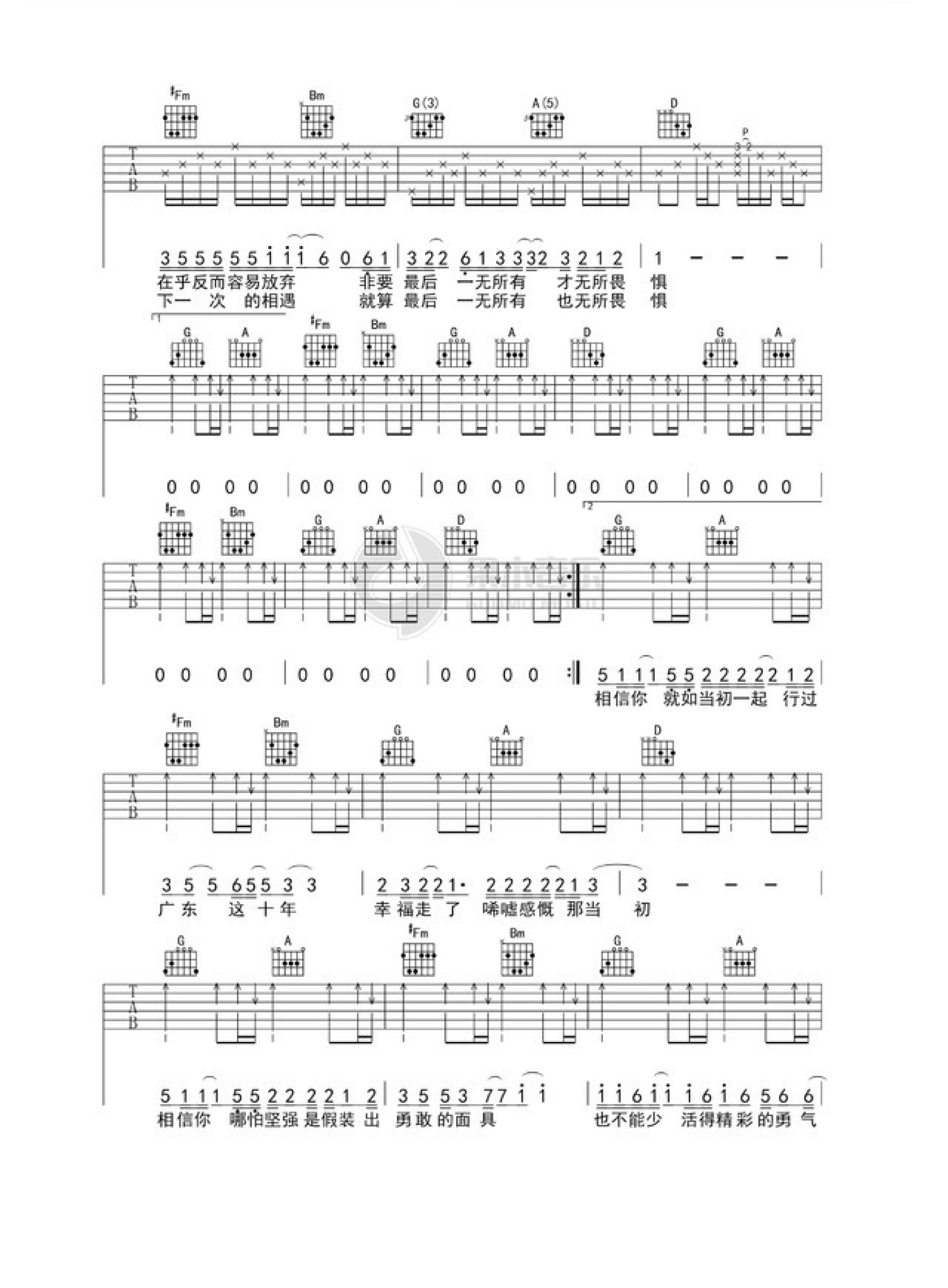 曲谱介绍: 广东雨神《广东爱情故事》吉他谱_D调吉他弹唱谱