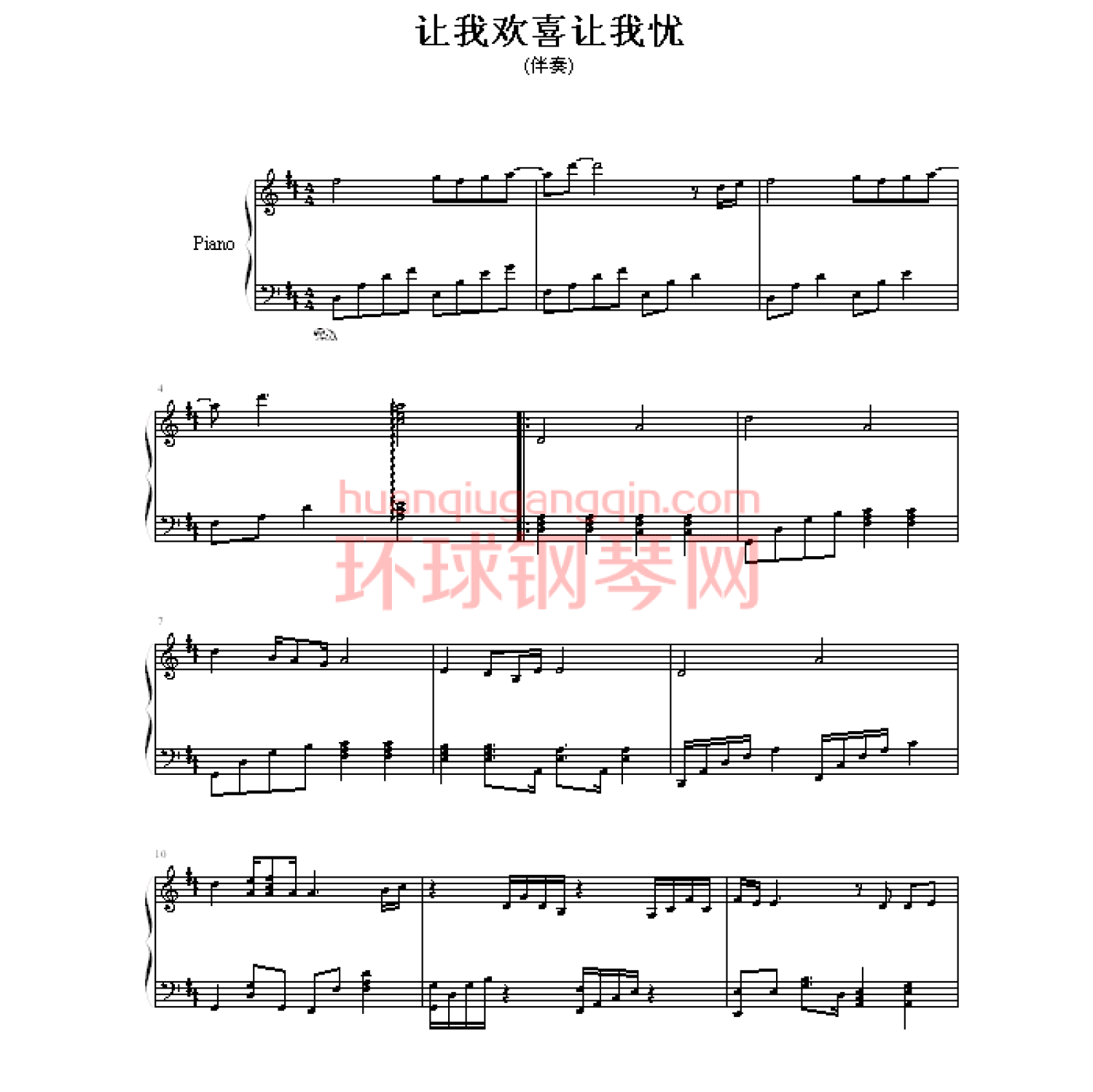 当前位置:琴谱网>钢琴谱>让我欢喜让我忧