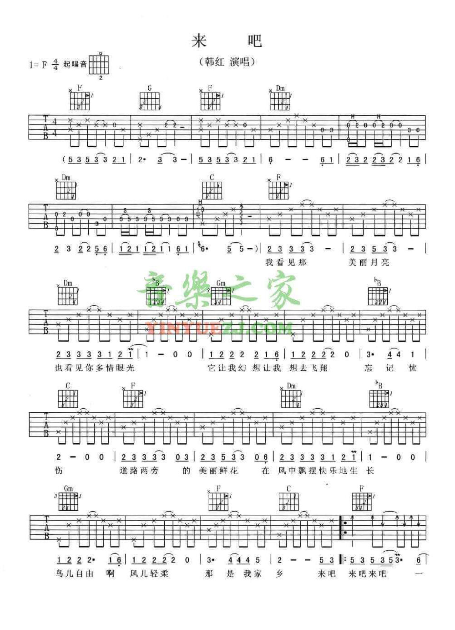来吧吉他谱 - 韩红 - F调吉他弹唱谱
