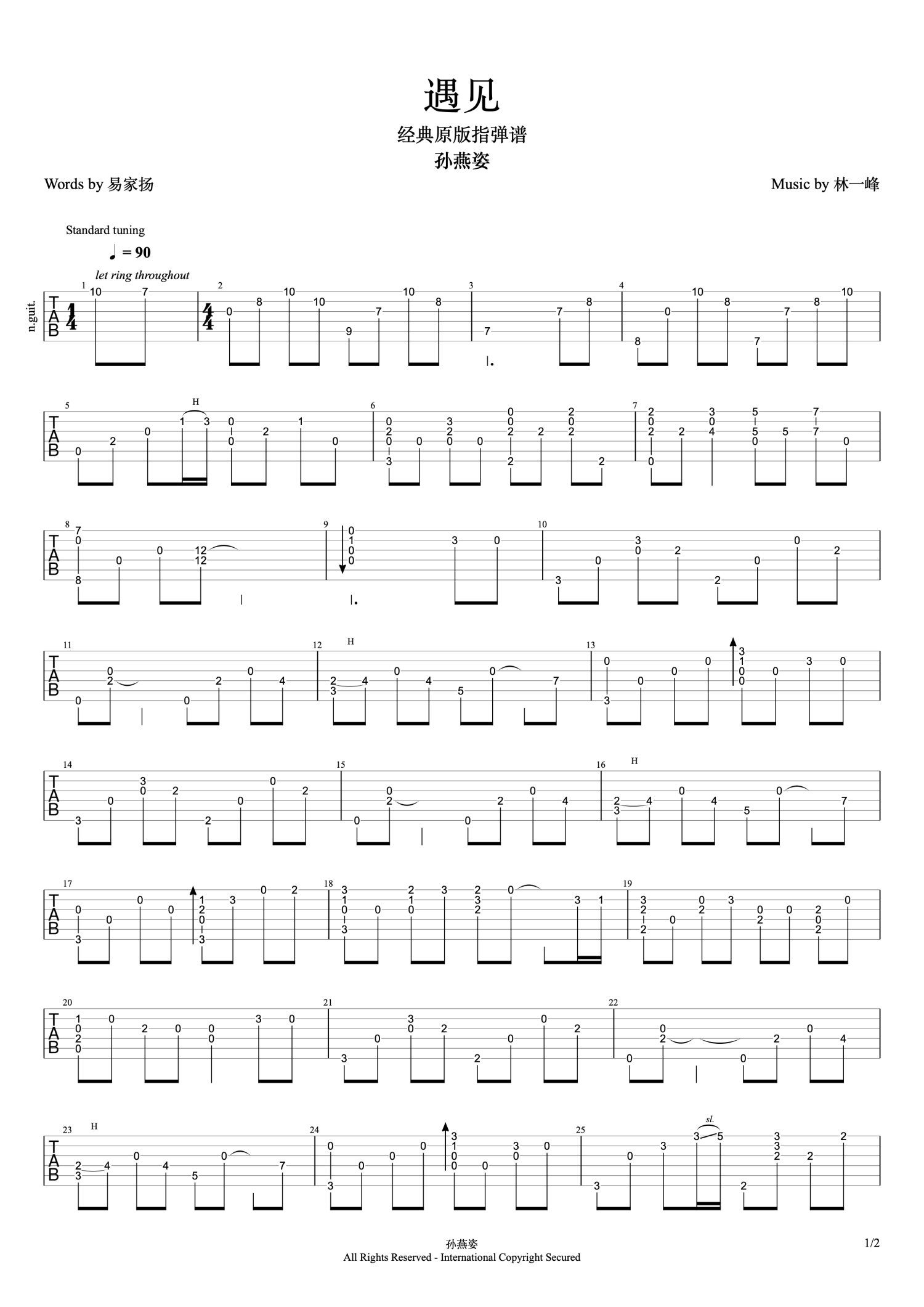 遇见吉他谱 - 孙燕姿 - G调吉他独奏谱